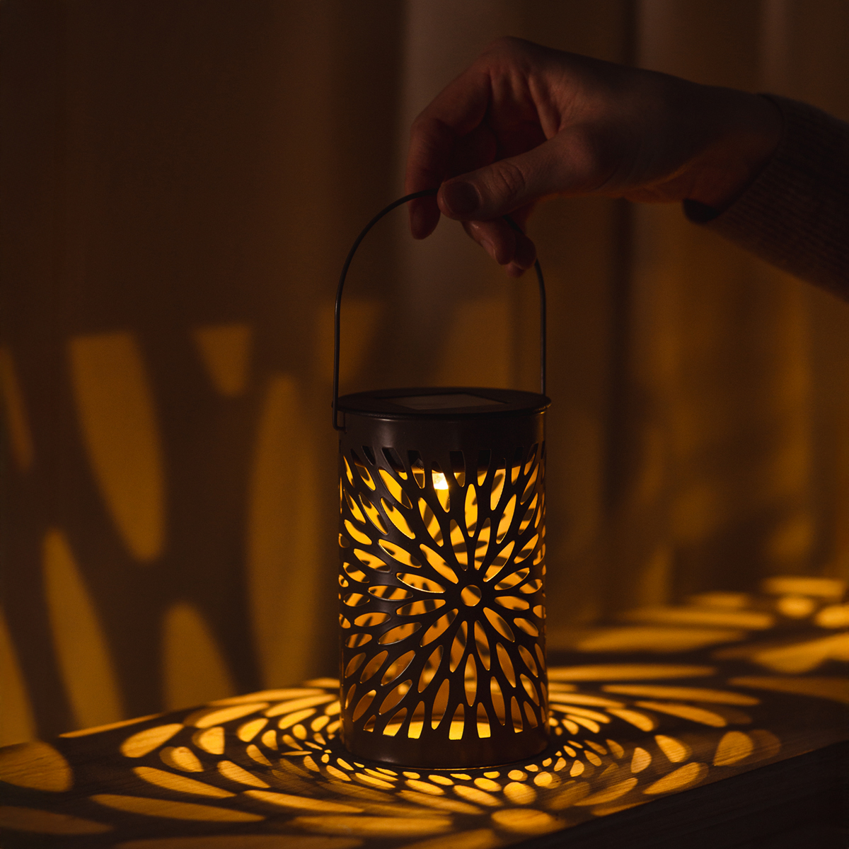 Naše solárne lampióny kombinujú funkčnosť s atraktívnym dizajnom a vysoko kvalitným spracovaním. Sú vyrobené z robustného kovu, odolávajú ľahkému dažďu alebo letnému počasiu a vydržia vám roky. Vďaka svojej praktickej veľkosti – výška 22 cm vrátane rukoväte a priemer 8 cm – sa ľahko prenášajú a aranžujú podľa potreby. Teplé biele LED diódy poskytujú príjemné, prívetivé svetlo, ktoré nie je ani oslnivé, ani rušivé. Či už lampióny kreatívne rozmiestnite pri večernom grilovaní, alebo ich použijete ako atmosférické osvetlenie romantického balkóna, doplnia akýkoľvek štýl. Obzvlášť úžasne vyzerajú v boho alebo vintage štýle. Tí, ktorí milujú prírodné tóny, ocenia zladenú farebnú kombináciu. Lampióny môžete ideálne kombinovať s vonkajšími kvetináčmi alebo inými dekoratívnymi solárnymi svetlami, čím vytvoríte harmonický celkový vzhľad.