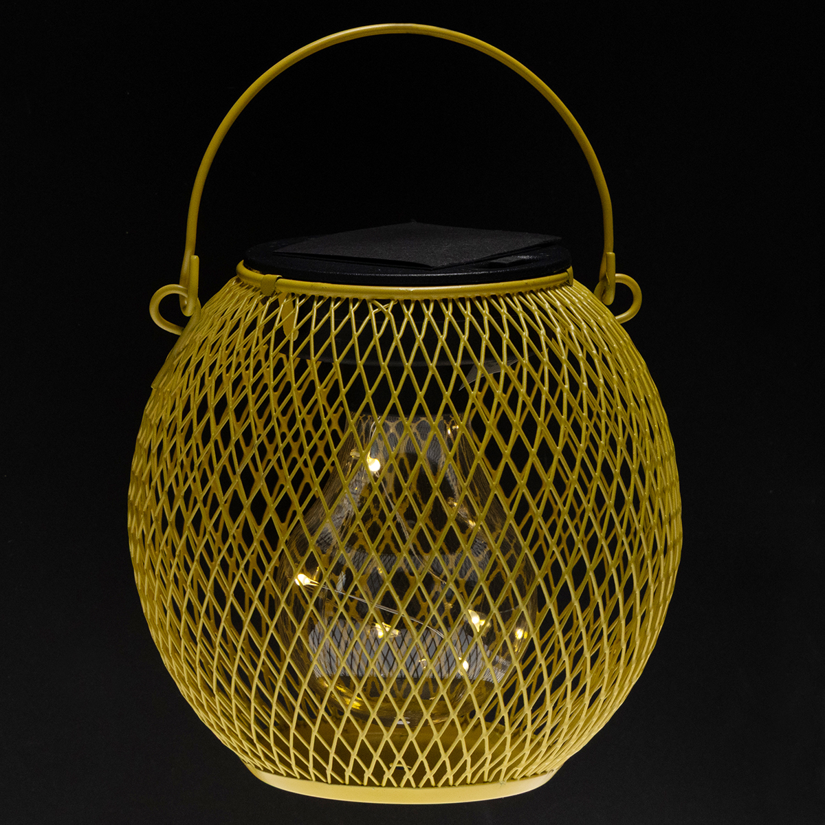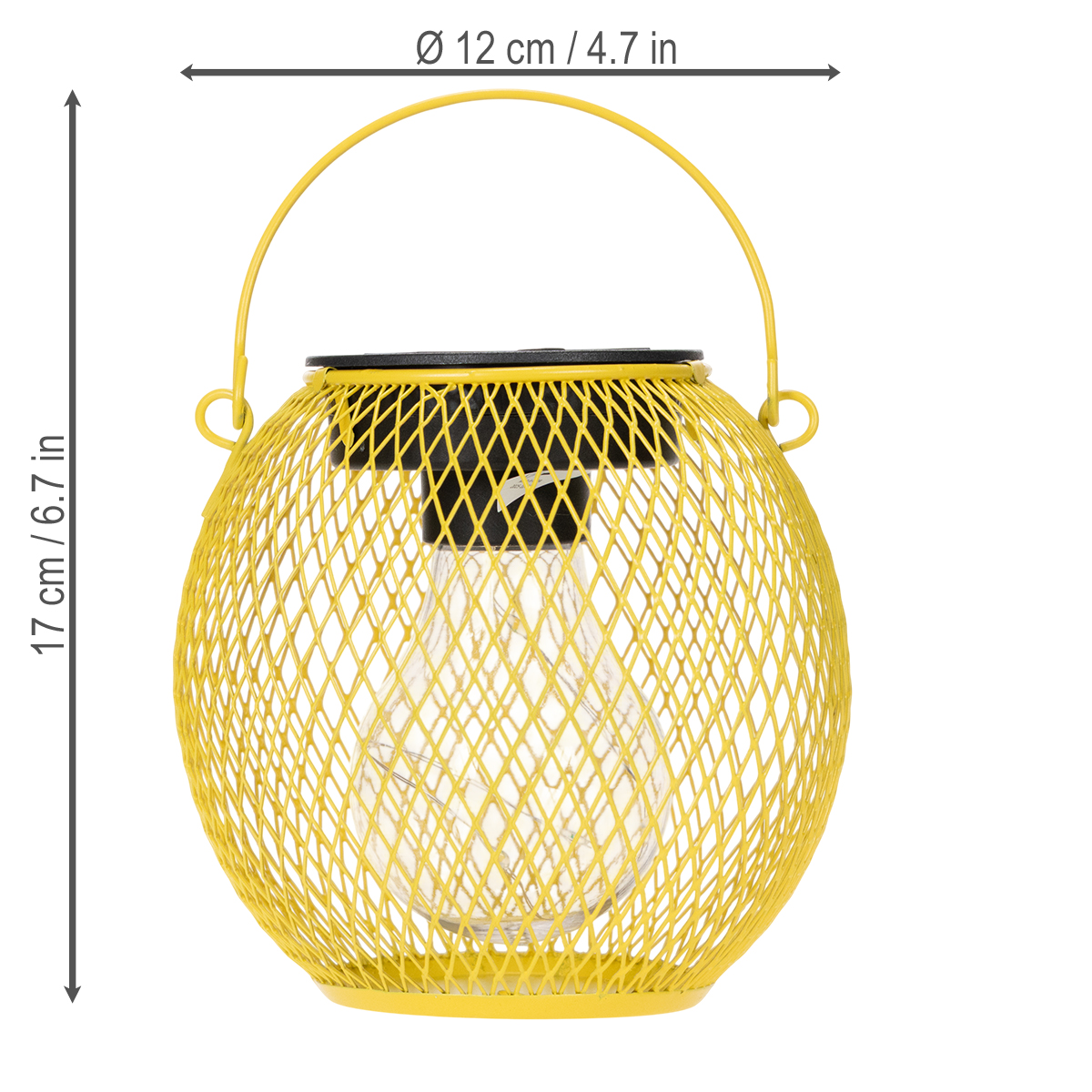 Táto solárna lampa do záhrady a na terasu zaujme svojou úspešnou kombináciou štýlu a funkčnosti. Jej moderný sieťovaný dizajn dodáva každému vonkajšiemu priestoru jedinečný vzhľad. Vysokokvalitný kov v slnečnej žltej farbe vyžaruje príjemný a zároveň moderný pocit. Lampáš sa obzvlášť dobre začlení do stredomorského prostredia alebo dodá farebný nádych škandinávskej záhrade. Integrovaná rukoväť uľahčuje prepravu a premiestňovanie.