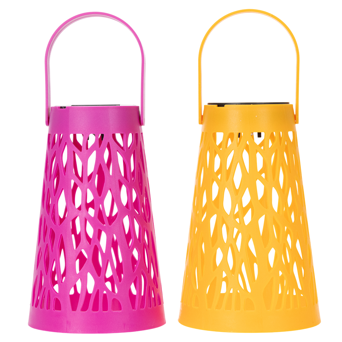 Táto sada dvoch lampášov – jeden vo veselej ružovej a druhý v žiarivej žltej farbe – rozžiari vaše vonkajšie priestory. Moderný vzhľad týchto LED lampášov, vyrobených z jemného perforovaného plastu, dokonale dopĺňa letnú atmosféru a bezproblémovo sa hodí takmer k akémukoľvek štýlu záhrady. Teplé biele svetlo vyžarované LED diódami vytvára jemnú, príjemnú žiaru bez oslnenia, vďaka čomu sú tieto lampáše všestranným a obľúbeným doplnkom vašej vonkajšej dekorácie. Objavte, aké jednoduché môže byť rozžiariť vašu záhradu!