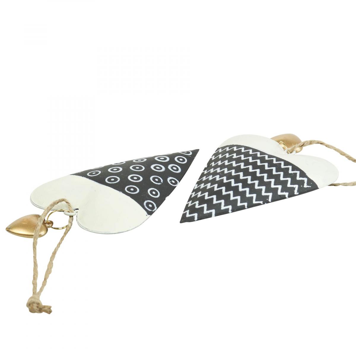 Názov produktu: Srdce Čiernobiela kovová dekorácia na zavesenie 7,5×11cm 4 ks