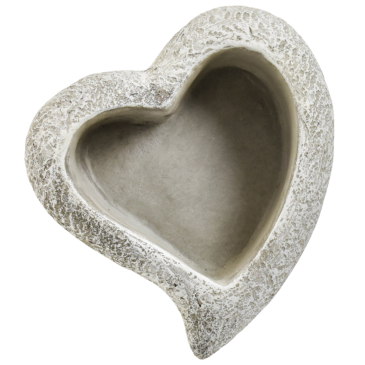 Dodajte svojmu obytnému priestoru štýlový a láskyplný nádych s našou vynikajúcou kvetináčom z liateho kameňa v tvare srdca v šedej a bielej farbe. Vďaka jemne bielenému povrchu, ktorý obzvlášť krásne zvýrazňuje drsnú textúru, je každý kúsok jedinečný a prináša romantiku a estetiku do vašej obývačky alebo záhrady.