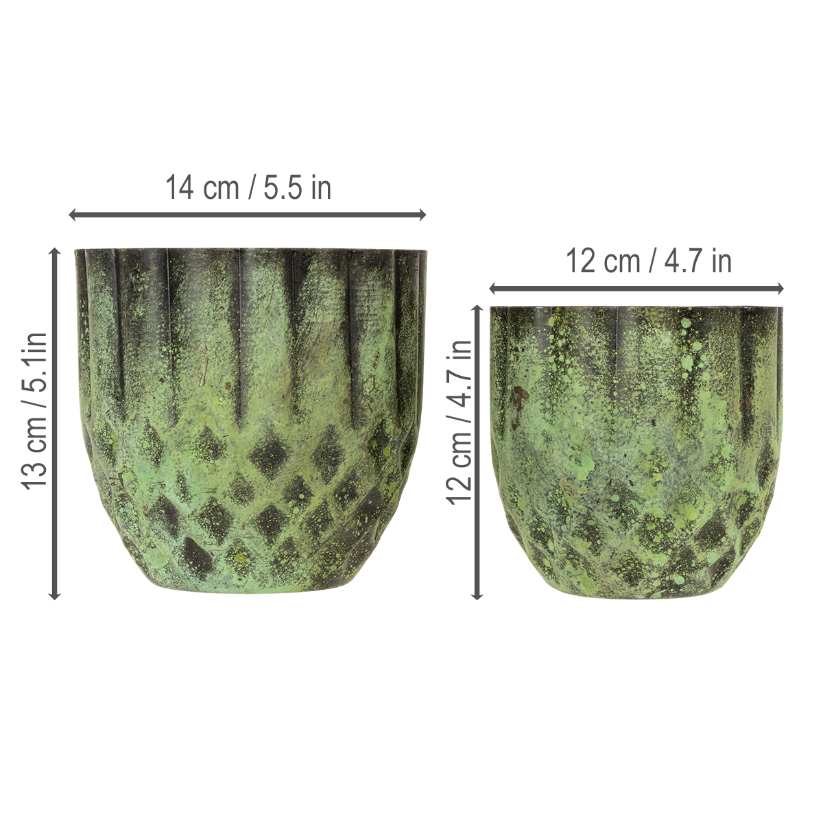 Starožitný kovový kvetináč, zelený, Ø14/12 cm, sada 2 kusov