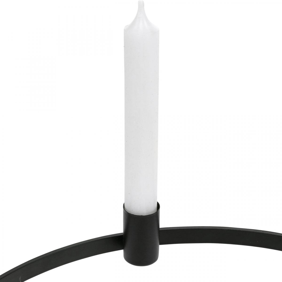Stojan na sviečku vyrobený z kovu v čiernej farbe je vhodný aj na väčší ozdobný tanier alebo ho možno vďaka svojmu širokému priemeru umiestniť okolo dekorácie na stôl. Vzhľadom k tomu, že dizajn je puristický a rezervovaný, môžete prstencom sviečky nastaviť opatrný akcent.
