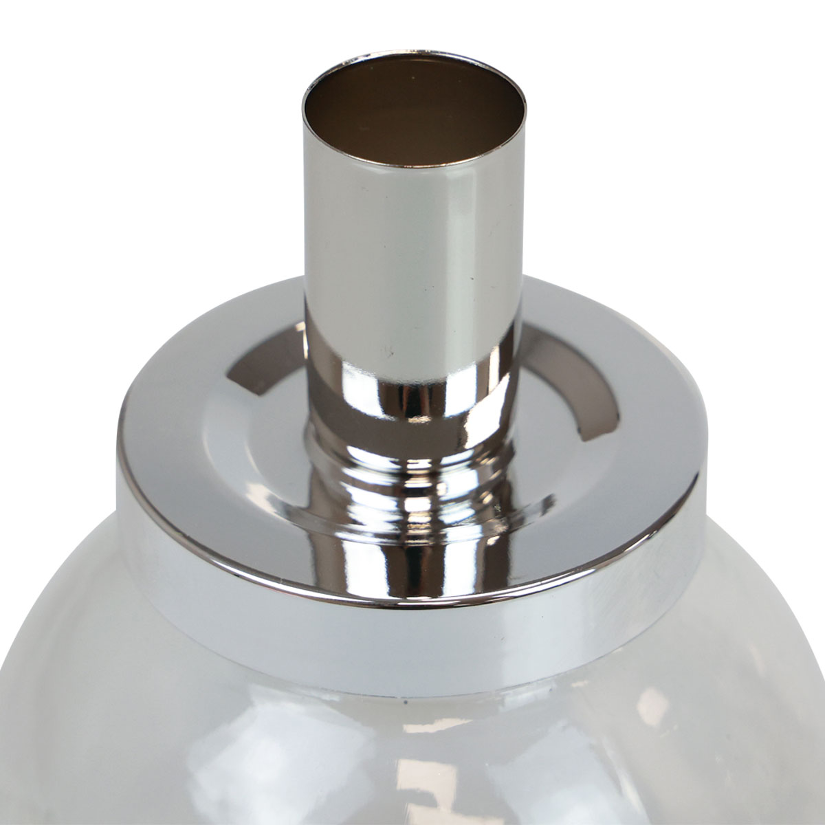 Kombinácia skla a striebra robí svietnik ešte elegantnejším. Držiak je upevnený na vrchnáku ozdobného pohára skrutkou.