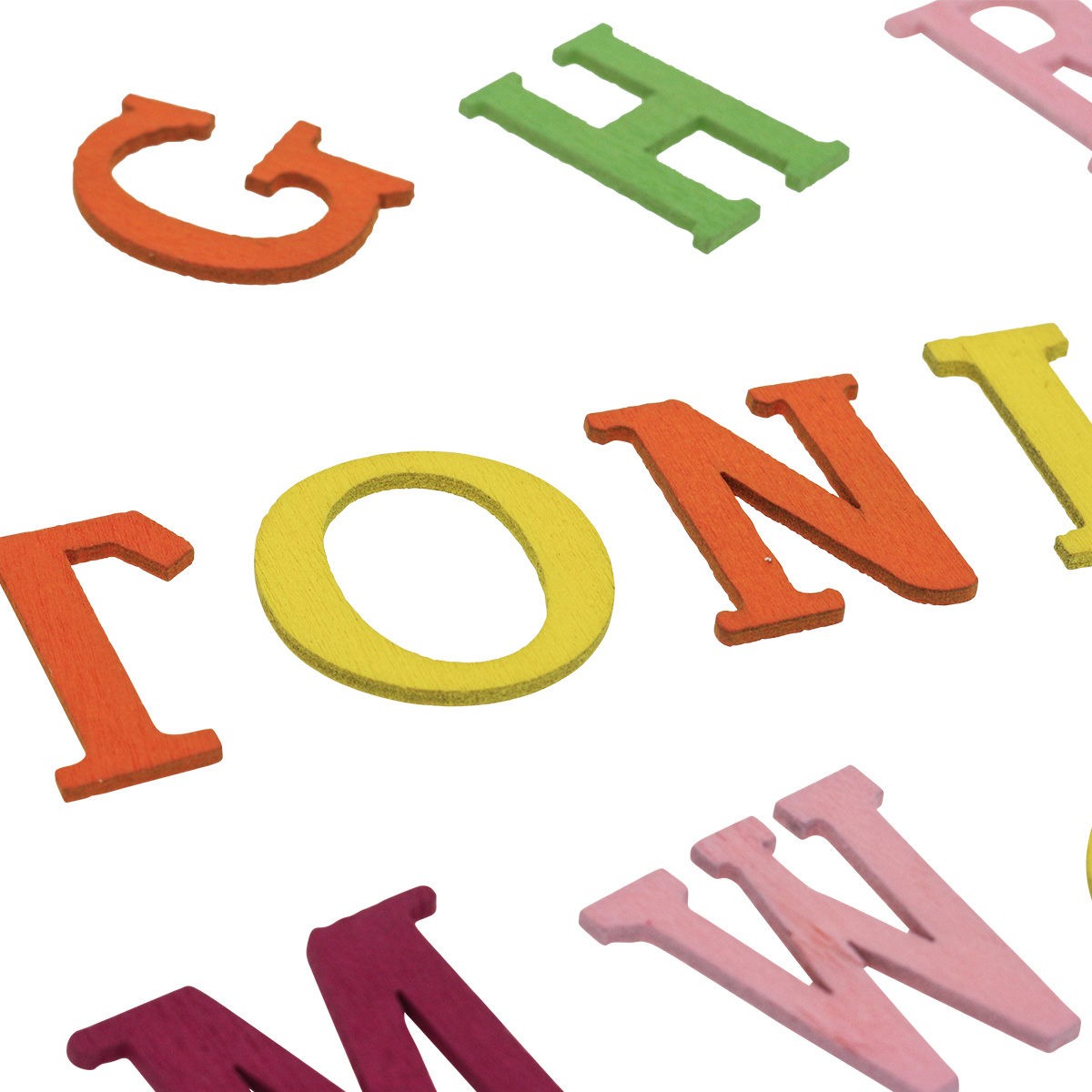 Tu získate kompletnú abecedu z 26 základných latinských písmen v rôznych farbách. Drevená rozptylová dekorácia na zápis do školy je náhodne oranžová, ružová, žltá, červená, biela, fialová alebo zelená.
