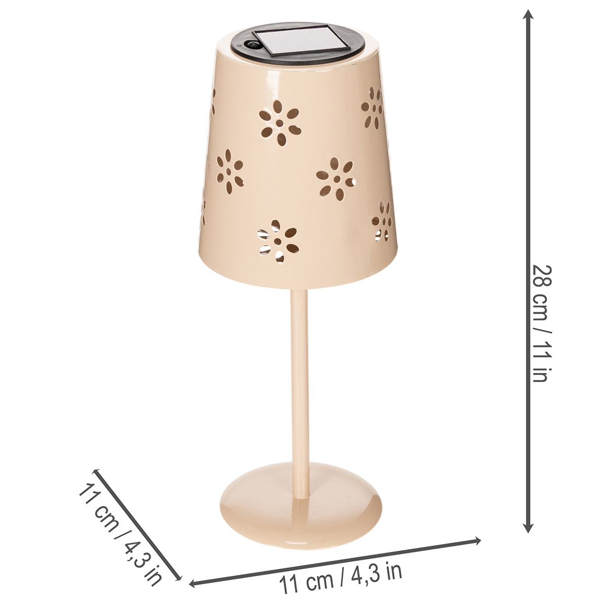 Toto vonkajšie solárne svetlo je skutočne všestranné. S výškou 28 cm jeho očarujúci dizajn skrášli každý kút – či už je to záhradný stôl, schodisko alebo nízka stena vo vašom vonkajšom priestore. Teplé biele LED svetlo poskytuje útulné osvetlenie, ktoré neoslňuje, no zároveň je dostatočne jasné na vytvorenie príjemnej atmosféry. Vysokokvalitná konštrukcia z robustného kovu a krásna béžovo-ružová povrchová úprava z neho robia dlhotrvajúci dekoratívny prvok.