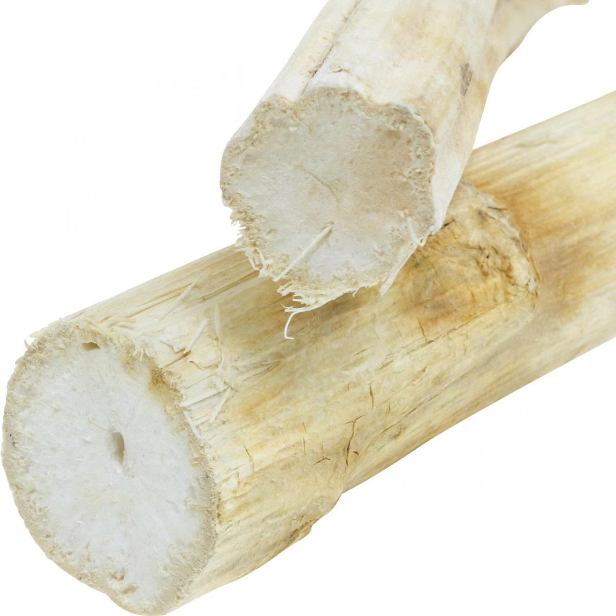 Pomocou tejto elegantnej bielej stonky slnečnice môžete vytvoriť osviežujúce prestieranie a rozjasniť svoje rastliny v kvetináčoch! Túto prírodnú dekoráciu tvoria olúpané, očistené a vysušené stonky slnečnice, známej aj ako Helianthus annuus.Peknú zvonkohru si môžete vyrobiť aj sami, ak paličky narežete na rôzne veľkosti a zavesíte ich vedľa seba. Alebo zavesíte stonky slnečnice pod seba a máte krásnu drevenú retiazku, ktorá zdobí rám dverí. Ak máte v byte izbové palmy, stonky slnečnice môžete použiť ako dekoráciu do kvetináča a voľne ich položiť na gule rastlín a prikryť nimi zeminu v kvetináči. Drevené palice ale vyzerajú naozaj pekne aj po priamom umiestnení do zeme a dajú sa použiť ako predel na zeleninový alebo kvetinový záhon v záhrade.