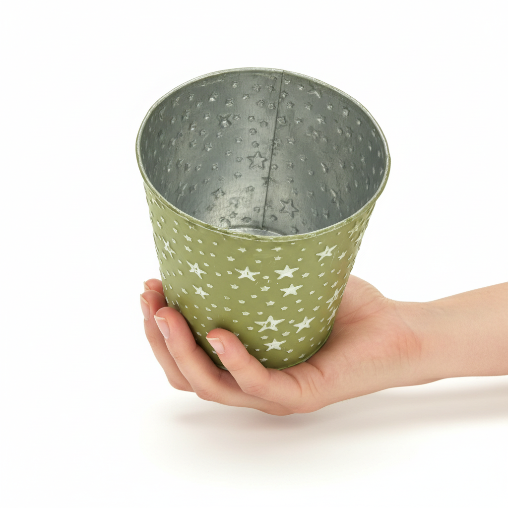 Strieborno-zelený kvetináč, kovový kvetináč s hviezdičkami, Ø14 cm