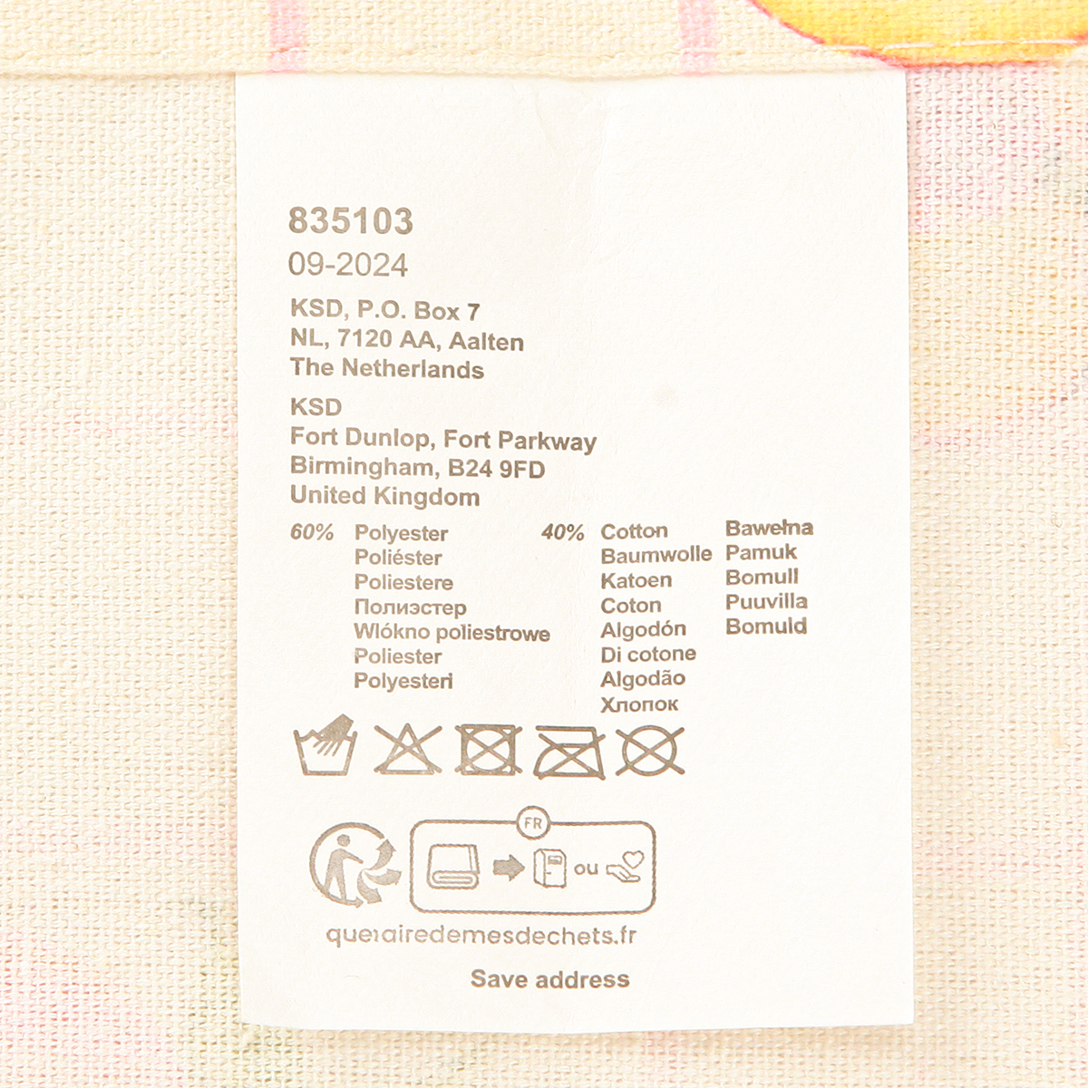 - Materiál: 60% polyester, 40% bavlna – odolný a nenáročný na údržbu