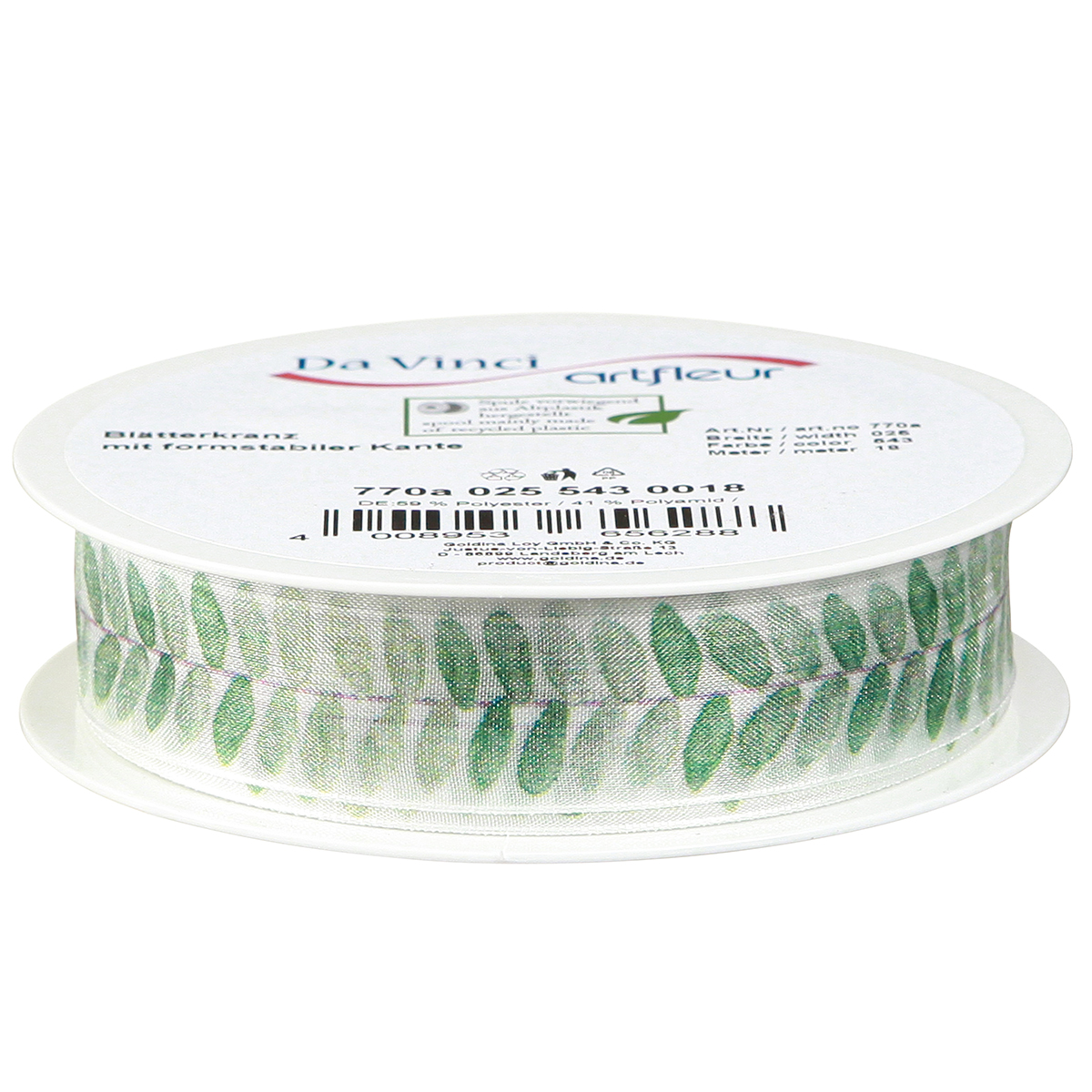 Stuha zelené listy Organzová stuha ozdobná stuha 25mm 18m