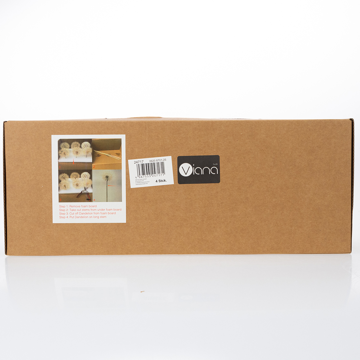 Púpavy majú výšku 50 cm a dodávajú sa v praktickej sade po štyroch. Ich zvláštnosťou je jemne farebný odtieň krehkých kvetných hlávok, ktorý rozžiari každý kút bez toho, aby bol príliš výrazný. Doplnia takmer každý štýl interiérového dizajnu, od boho a škandinávskeho až po moderný vidiecky štýl. Elegantné, decentné a všestranné – tieto sušené kvety sú jednoducho snom každého domova.