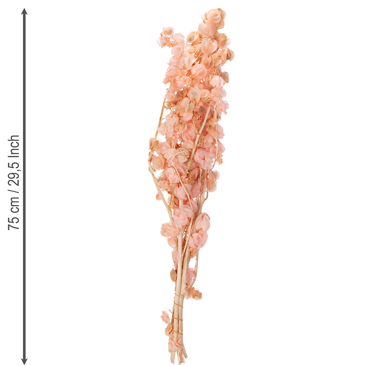 Vďaka pôsobivej výške 75 cm a sviežej kombinácii ružových a prírodných tónov je stonkový sušený kvet nielen vrcholom každej kytice zo sušených kvetov, ale aj všestranným samostatným kúskom. Jeho jemný vzhľad dodá každej miestnosti očarujúci a romantický nádych. Navyše je neuveriteľne praktický – netreba ho polievať, nevädne a perfektne sa kombinuje s inými sušenými kvetmi alebo dekoratívnymi prvkami, ako sú vázy, svietniky alebo svetielka.