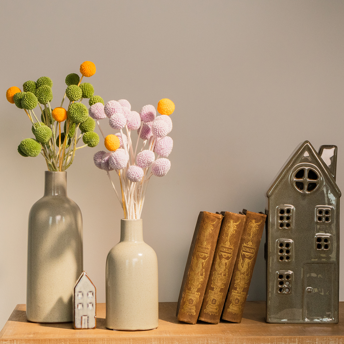 Použite napríklad craspediu na vytvorenie nápaditých stolových aranžmánov alebo elegantných jesenných kytíc. Možno by ste si chceli vyrobiť pôvabné vence svojpomocne alebo vylepšiť balenie darčekov? Nechajte svoju kreativitu uzdu a skombinujte craspediu s inými sušenými kvetmi alebo štýlovými bytovými doplnkami, ako sú vázy a svietniky. Takto premeníte akúkoľvek dekoráciu na harmonický pútač pozornosti.