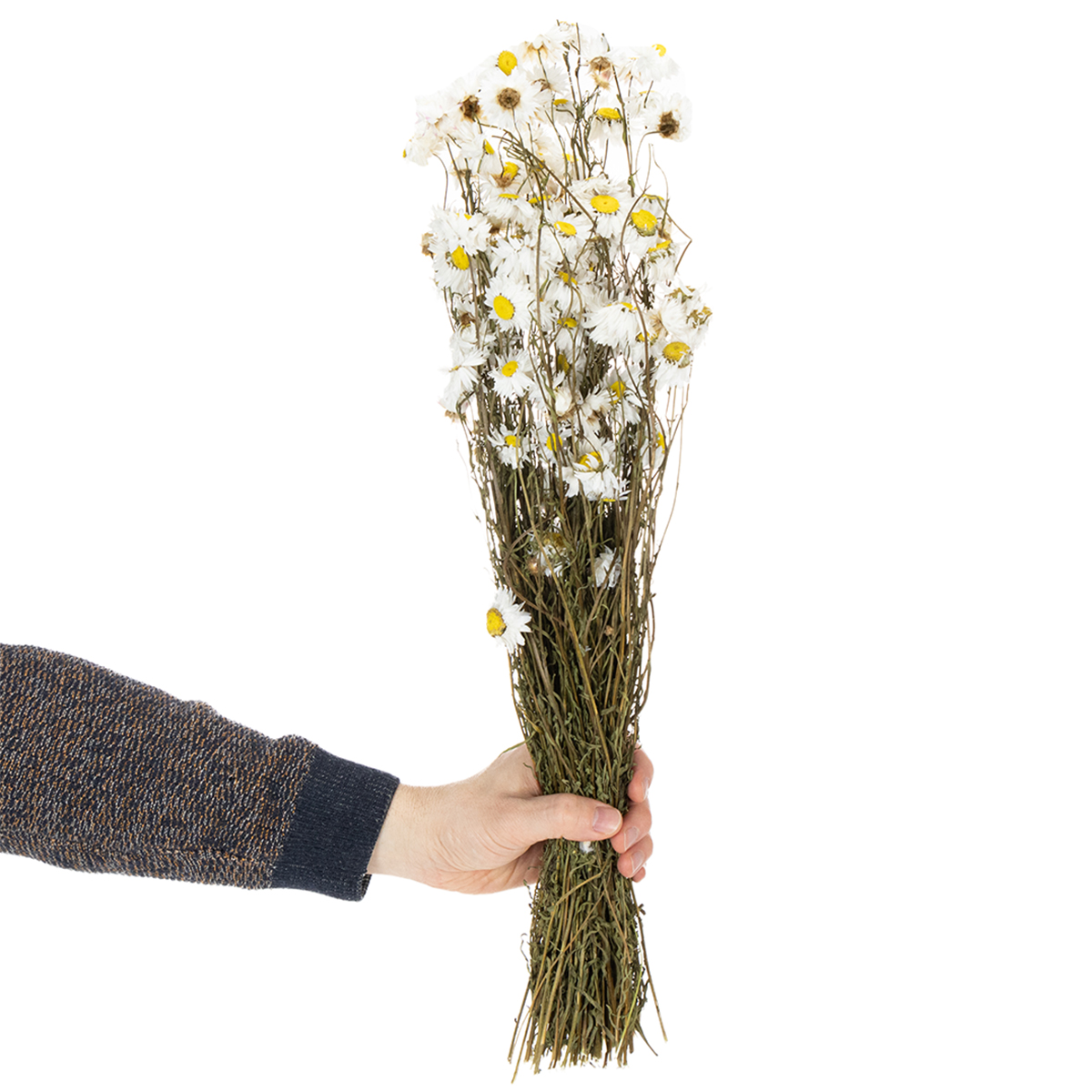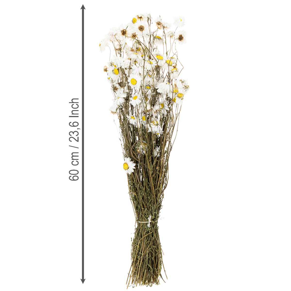 Sušené kvety Acroclinium, biele kvety, sušený kvetinový aranžmán, 60 cm, 80 g