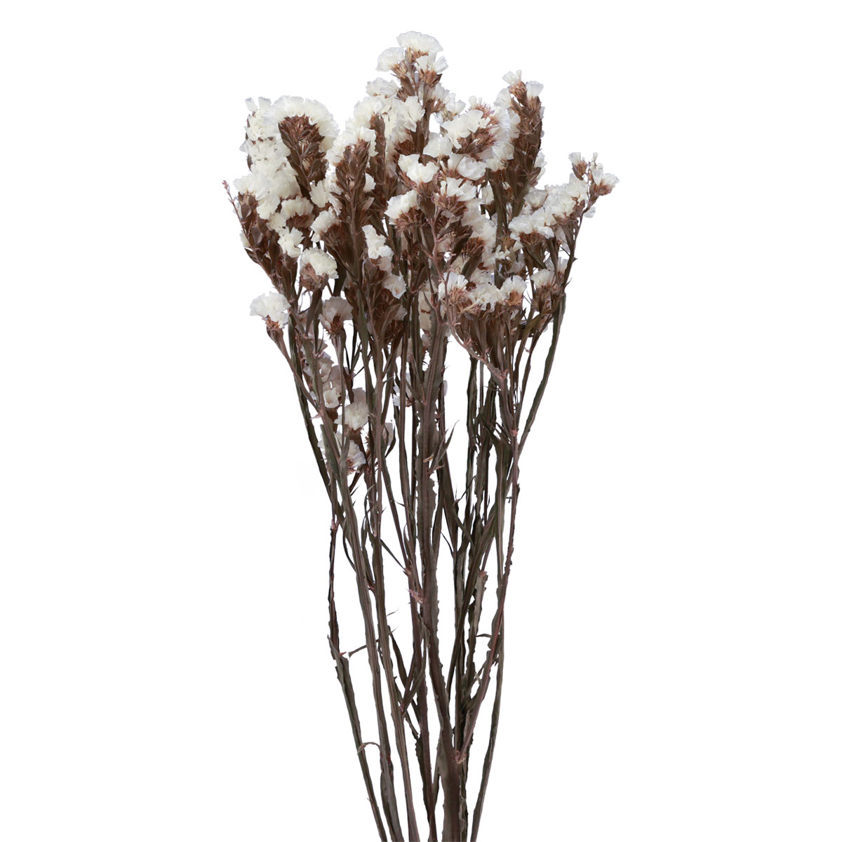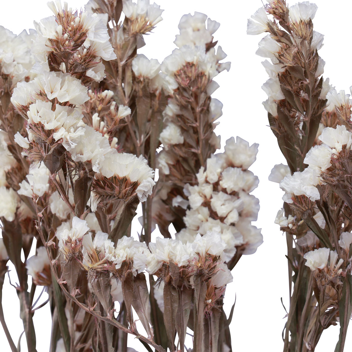Biele kvety Statice rozžiaria každú farebnú kyticu sušených kvetov, sú nezávislé na ročnom období a ideálne sa dajú kombinovať s dekoráciami v prírodných farbách. S Limoniom môžete naaranžovať aj špičkové dekorácie s bielymi a čiernymi sušenými kvetmi a trávami.