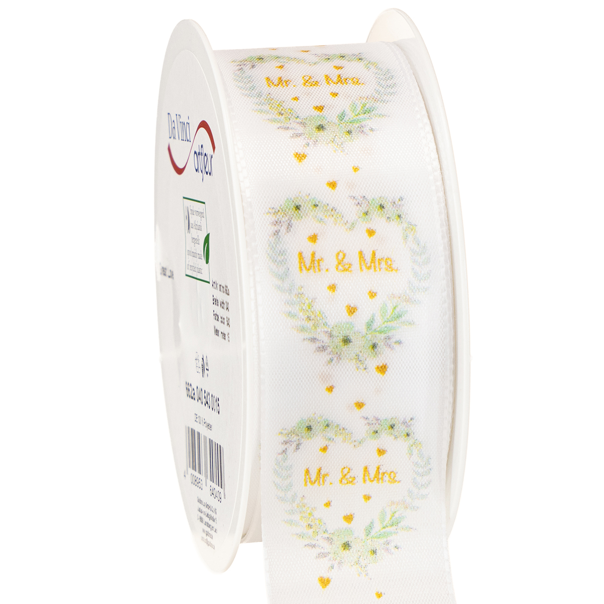 Svadobná ozdobná saténová stuha „Mr. & Mrs.“ pre elegantnú výzdobu