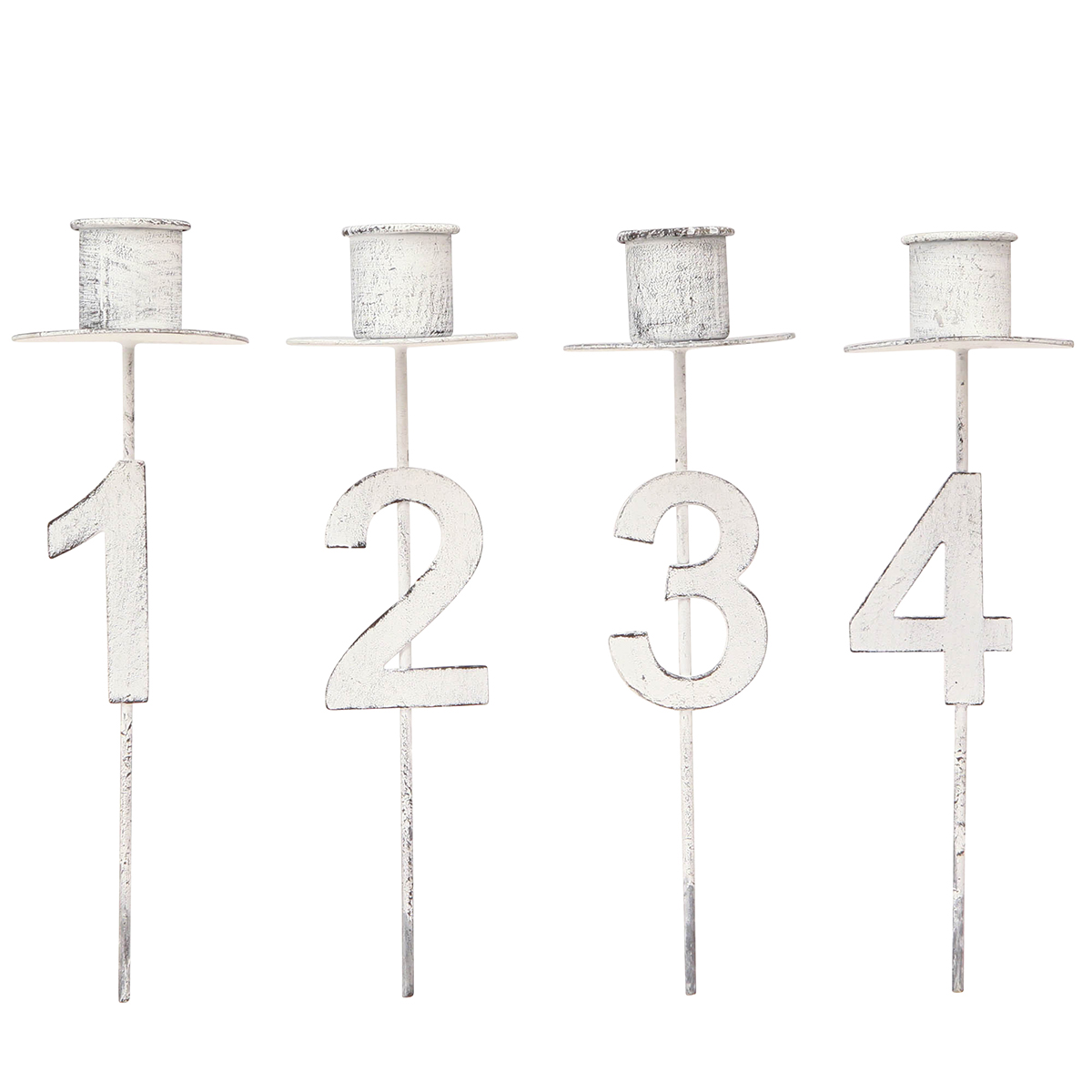 Naše adventné svietniky sa vyznačujú nadčasovou eleganciou a funkčnou všestrannosťou. Umyté biele a zdobené nostalgickými číslami prinesú na každý stôl osobitý nádych. Pevný tŕň bezpečne upevňuje svietnik a je ideálne navrhnutý na vkladanie, čím zaisťuje pevné uchytenie adventných vencov. Stojan na sviečku je vysoký približne 11 centimetrov od okraja otvoru po koniec čísla. Trn s číslom má pôsobivú dĺžku okolo 17,5 cm.