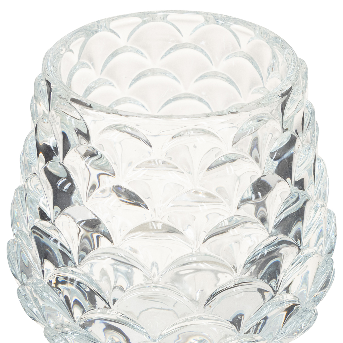 Niekedy sú to práve malé detaily, ktoré robia veľký rozdiel. Milujete vytváranie útulnej a príjemnej atmosféry pomocou svetla a dekorácií? Potom si zamilujete „Sklenené svietniky na čajové sviečky s kužeľmi a podstavcom“! Táto sada pozostávajúca z dvoch svietnikov na čajové sviečky rôznych výšok zaujme svojou jednoduchou eleganciou a sofistikovaným dizajnom, ktorý sa dokonale hodí do širokej škály interiérových štýlov. Číre sklenené lamely pripomínajú očarujúcu šišku – sú jemné, štýlové a nadčasové. Či už ako pútavý prvok v obývačke, ozdoba na sviatočnom stole alebo romantický zdroj svetla na útulný večer: tieto svietniky na čajové sviečky sú skutočne multitalentované!
