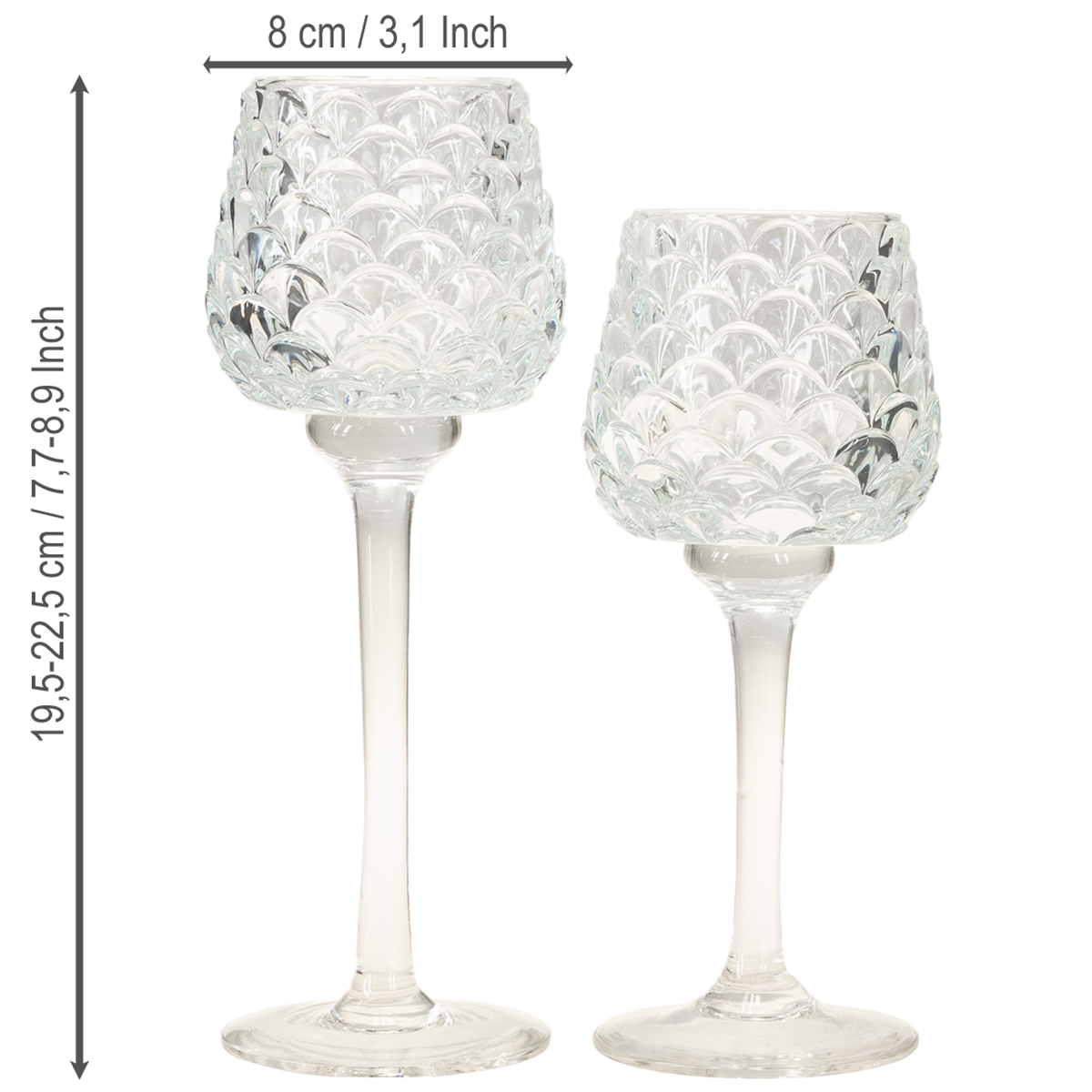 Svietnik na čajové sviečky zo skla s podstavcom V19,5/22,5 cm, sada 2 kusov
