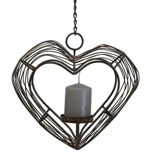 Svietnik na čajovú sviečku kovová závesná dekorácia hrdza dekorácia srdce 22×7×20cm