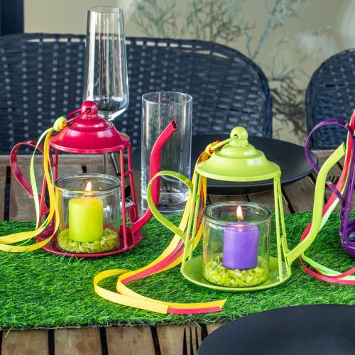 Kovový rám dekoratívnej kanvice, inšpirovaný klasickou kanvicou, dýcha duchom zašlých čias a je doplnený zeleno-modrým sklom, ktoré sa lákavo trblieta, len čo sa v ňom zapáli čajová sviečka. Ponúka ideálne riešenie pre bezpečné a atraktívne osvetlenie vášho záhradného stola alebo balkóna. Vďaka praktickému krúžku na uzavretom veku môžete tento džbán na zavesenie použiť aj ako dekoračný prvok.