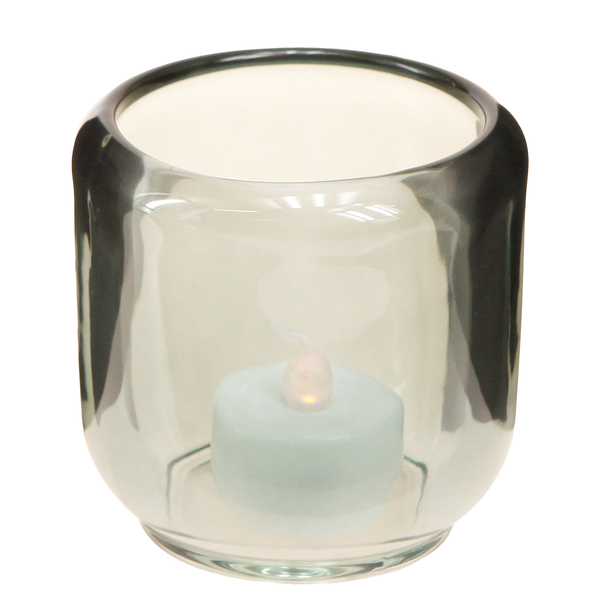 Svietnik na čajovú sviečku sklo v dekore sivé drážky 8cm 6 ks