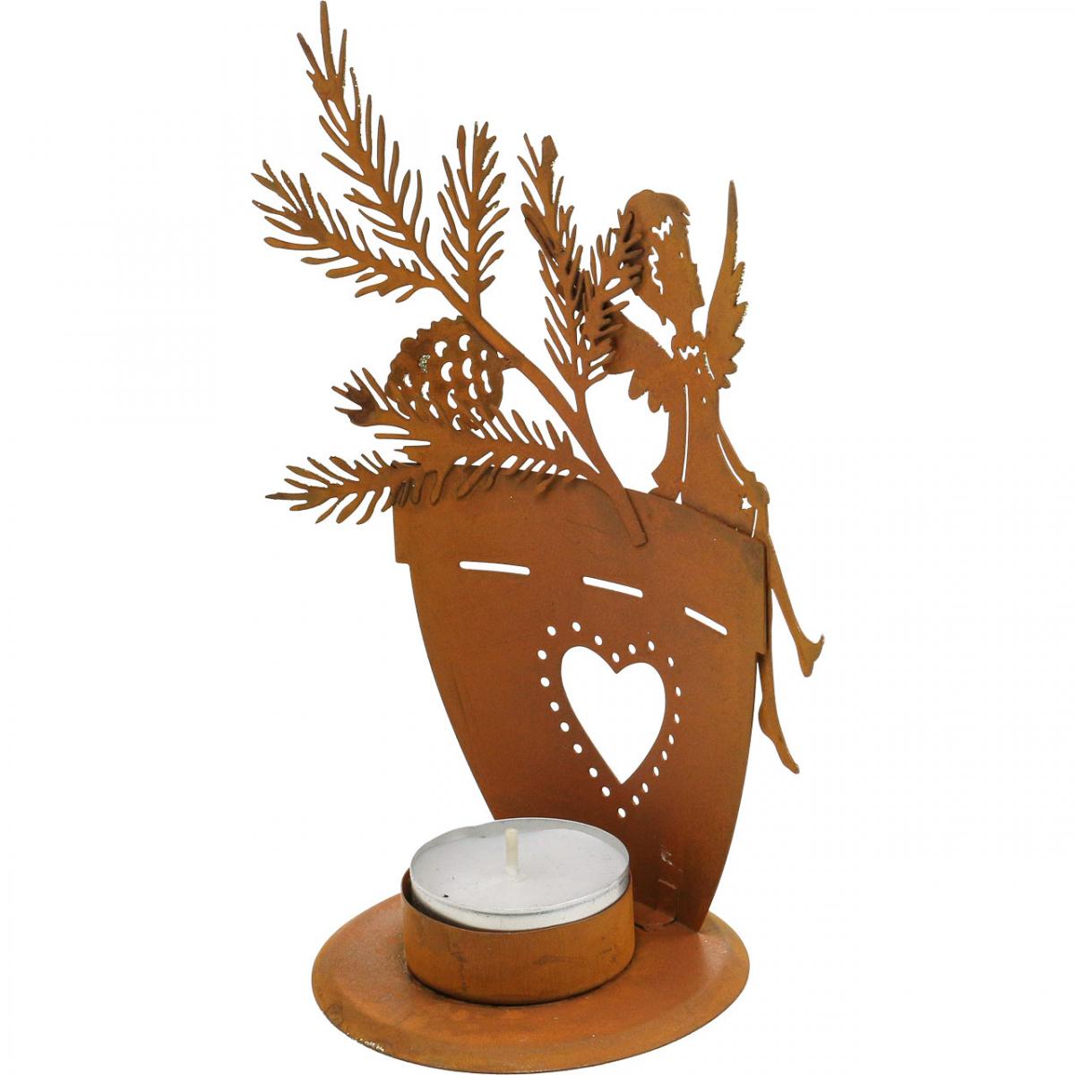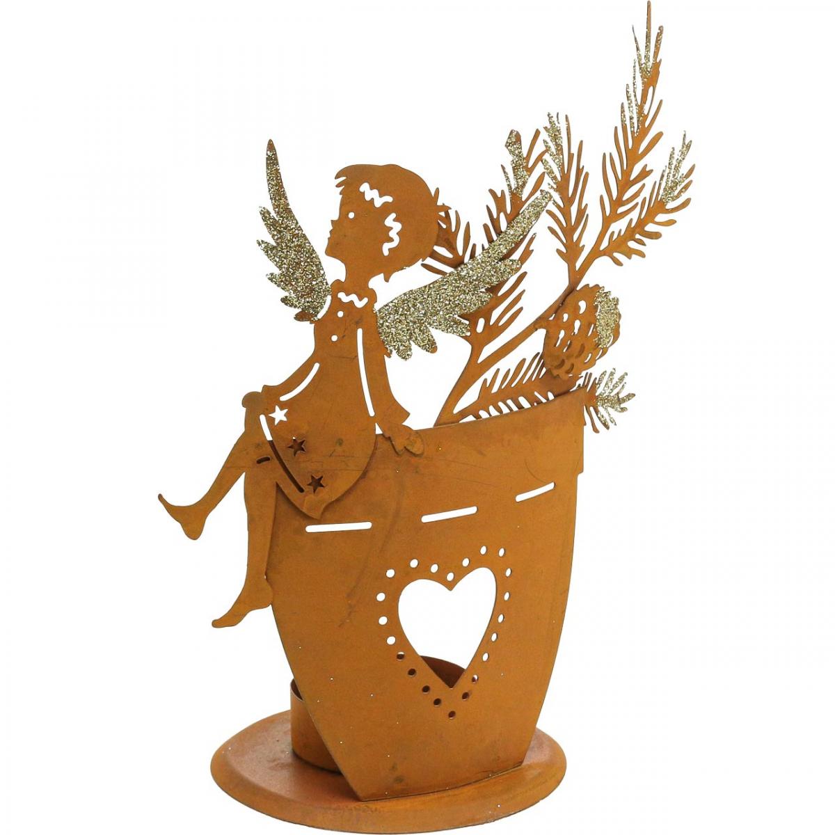Svietnik na čajovú sviečku Vianočná anjelská dekorácia hrdzavá dekorácia Ø8cm V18cm