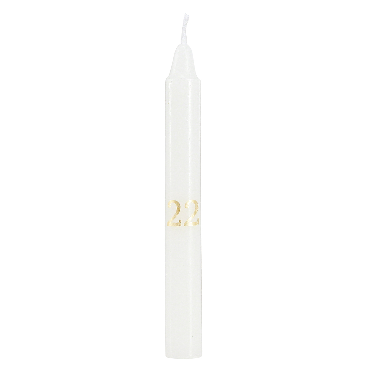 - Elegantné biele sviečky so zlatými číslami od 1 do 24