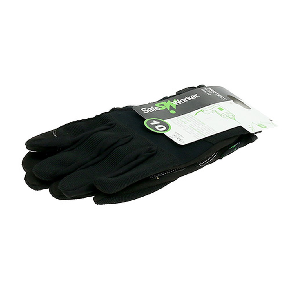Syntetické rukavice čiernej farby z Lycry, ktorá sa nazýva aj elastan, od Kixx® majú veľkosť 10. Pracovné rukavice sú zaradené do kategórie CE 2, čo znamená, že rukavice majú dobrú elasticitu a chránia pred menšími rizikami.