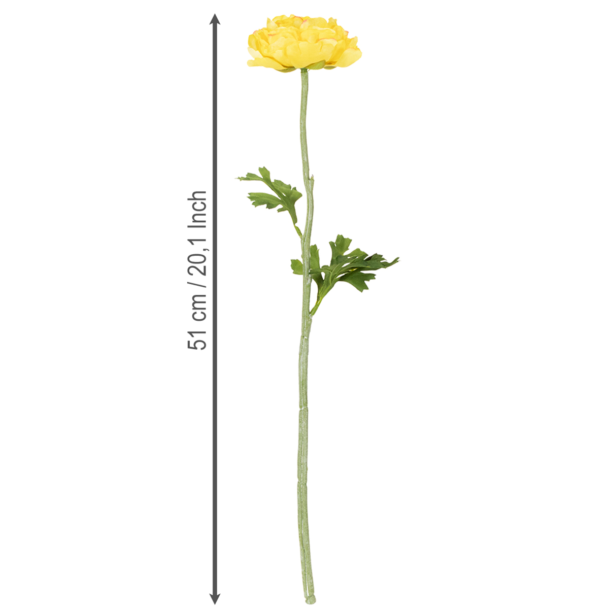 Niekedy chcete len štýlový a jednoduchý spôsob, ako rozjasniť akúkoľvek izbu, však? A práve vtedy prichádza na rad umelecký ranunkulus. So svojimi žiarivými farbami žltej, zelenej a náznakom červenej vytvára sviežu, elegantnú atmosféru – úplne bezúdržbovú. Kto má čas neustále polievať alebo meniť skutočné kvety? Tieto umelé dekoratívne kvety sú perfektnou alternatívou, ako do svojho domova alebo kancelárie vniesť nádych prírody.