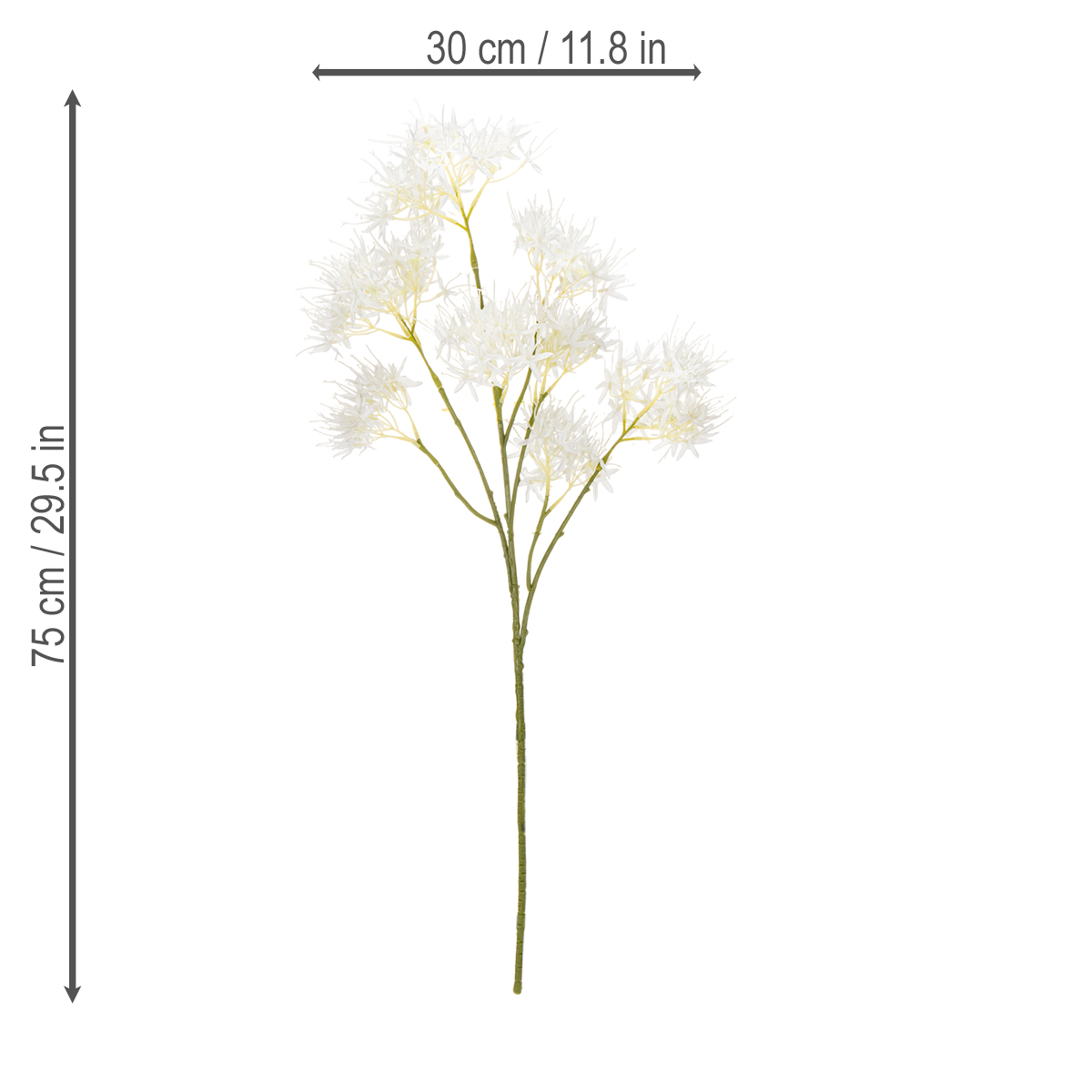 Hľadáte dekoráciu, ktorá je nadčasová a zároveň moderná? Možno niečo, čo osvieži izby a dodá štýlové akcenty? Táto umelo kvitnúca vetvička je oveľa viac než len dekorácia – prináša ľahkosť a eleganciu do každého obytného priestoru, či už je to obývačka, kancelária alebo jedáleň. S jemnými bielymi kvetmi a výškou 75 cm je táto vetvička skutočným pútačom pozornosti. Ideálna pre každého, kto chce spojiť decentnú eleganciu s nádychom prírody. Jednoducho ju umiestnite a okamžite si vychutnajte útulnú atmosféru!
