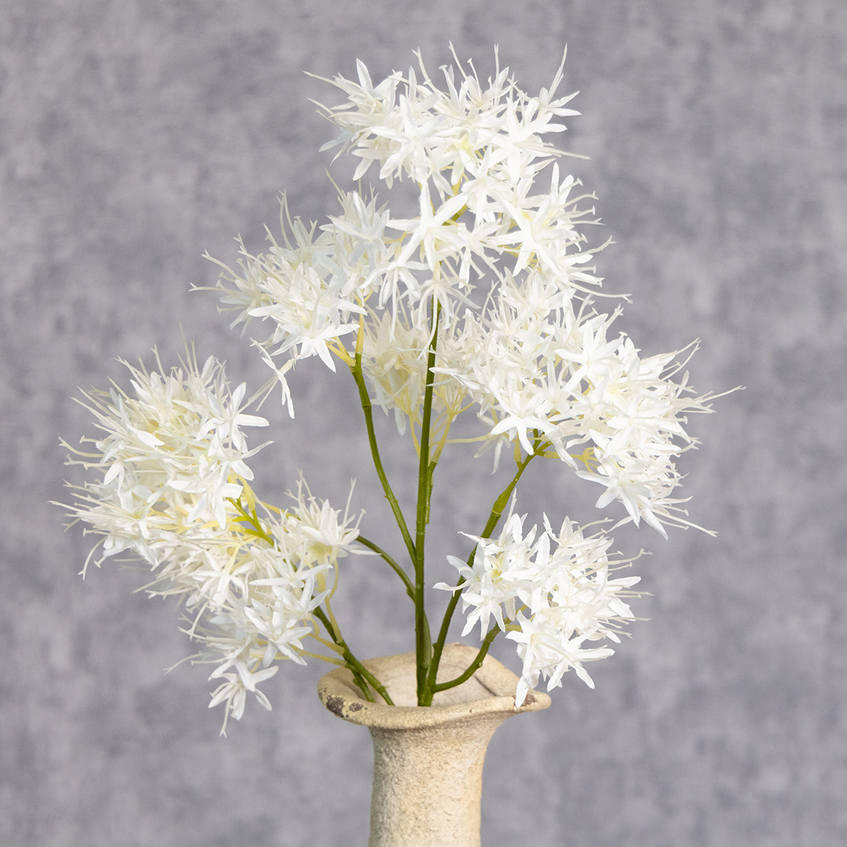 Biele kvety vždy symbolizovali čistotu, eleganciu a nové začiatky. Táto symbolika ich robí obzvlášť obľúbenými v svadobných a oslavných dekoráciách. Vyžarujú pokoj a jasnosť a skrášľujú každé prostredie. Štýlová jednoduchosť tejto umelej kvetinovej vetvy podčiarkuje tieto vlastnosti a dokonale ich vyzdvihuje. Či už ide o špeciálne príležitosti alebo o trvalú dekoráciu, tento doplnok stelesňuje nadčasový štýl a klasickú krásu.