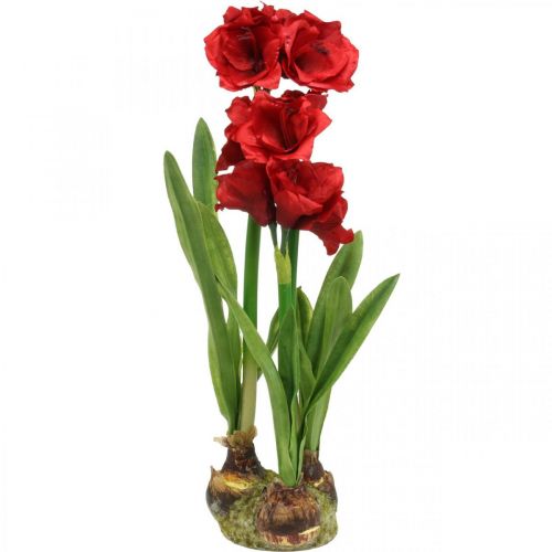 Umelá amaryllis červená 3 hodvábne kvety na machovej guli V64cm