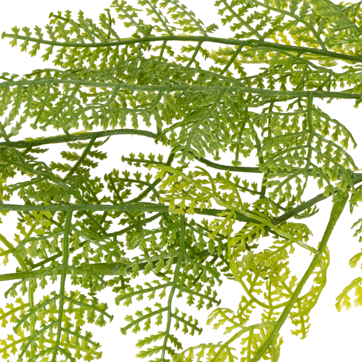Táto umelá papraď je vyrobená z vysoko kvalitného, UV odolného a trvácneho plastu a zachováva si svoju žiarivú zelenú farbu aj za rôznych svetelných podmienok a teplôt. Vďaka prekrývajúcim sa listom rastlina dokonale dopĺňa moderný, škandinávsky alebo prírodný štýl interiérového dizajnu. Skombinujte ju so štýlovými vázami alebo inými umelými rastlinami a prispôsobte si svoje izby.