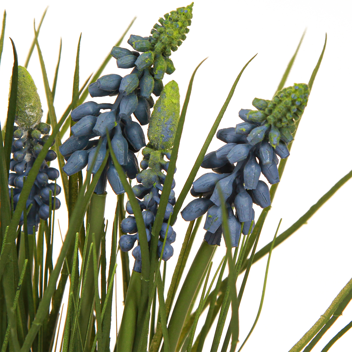 Dekoratívny kvet potom môžete vybaviť napríklad krásnym kvetináčom a potom ho postaviť ako stolovú dekoráciu ku konferenčnému stolíku alebo položiť na poličku. Umelé hroznové hyacinty sa obzvlášť hodia na jar, a preto ich možno kombinovať so skutočnými skorými kvetmi alebo inými umelými kvetmi a vytvoriť tak nápaditý umelý kvetinový aranžmán.