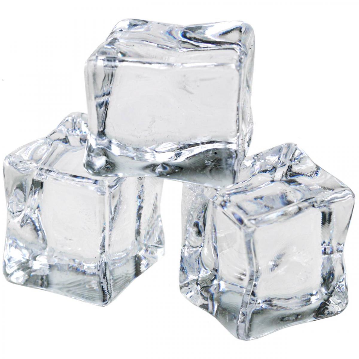 Tieto umelé kocky ľadu sú vyrobené z plastu a nemožno ich odlíšiť od skutočných, čo sa týka tvaru a štruktúry. Rovnako ako u kociek ľadu, ktoré sa už trochu roztopili, aj tieto majú zaoblené rohy a hrany.