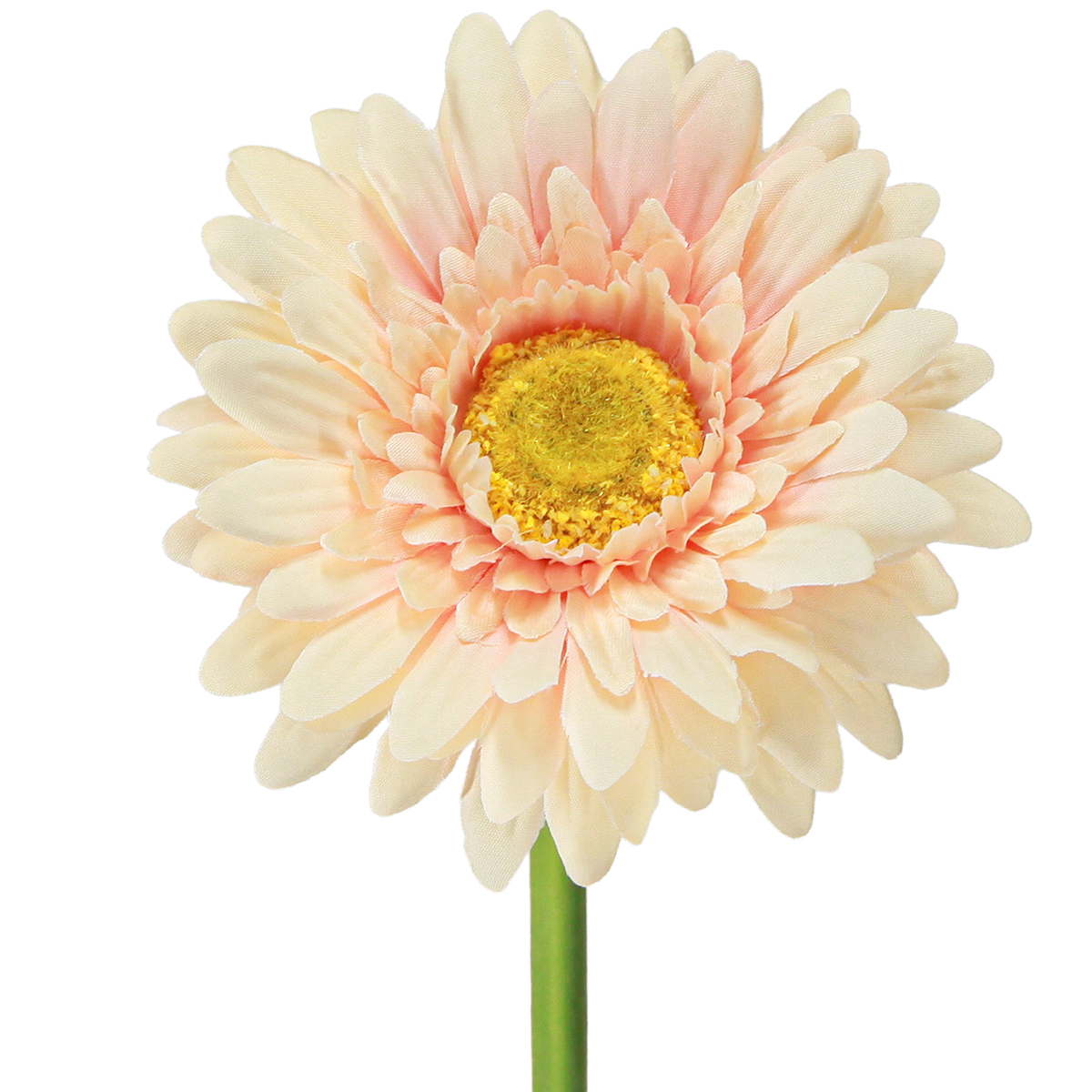 Umelá gerbera má dlhú stonku, ktorá končí veľkým slnkom podobným kvetom v marhuli. Zelená stonka kvetu má vo vnútri pružný kovový drôt. To znamená, že umelé kvety gerbery si môžete vytvarovať podľa svojich predstáv pre vaše dekoratívne aranžmány.