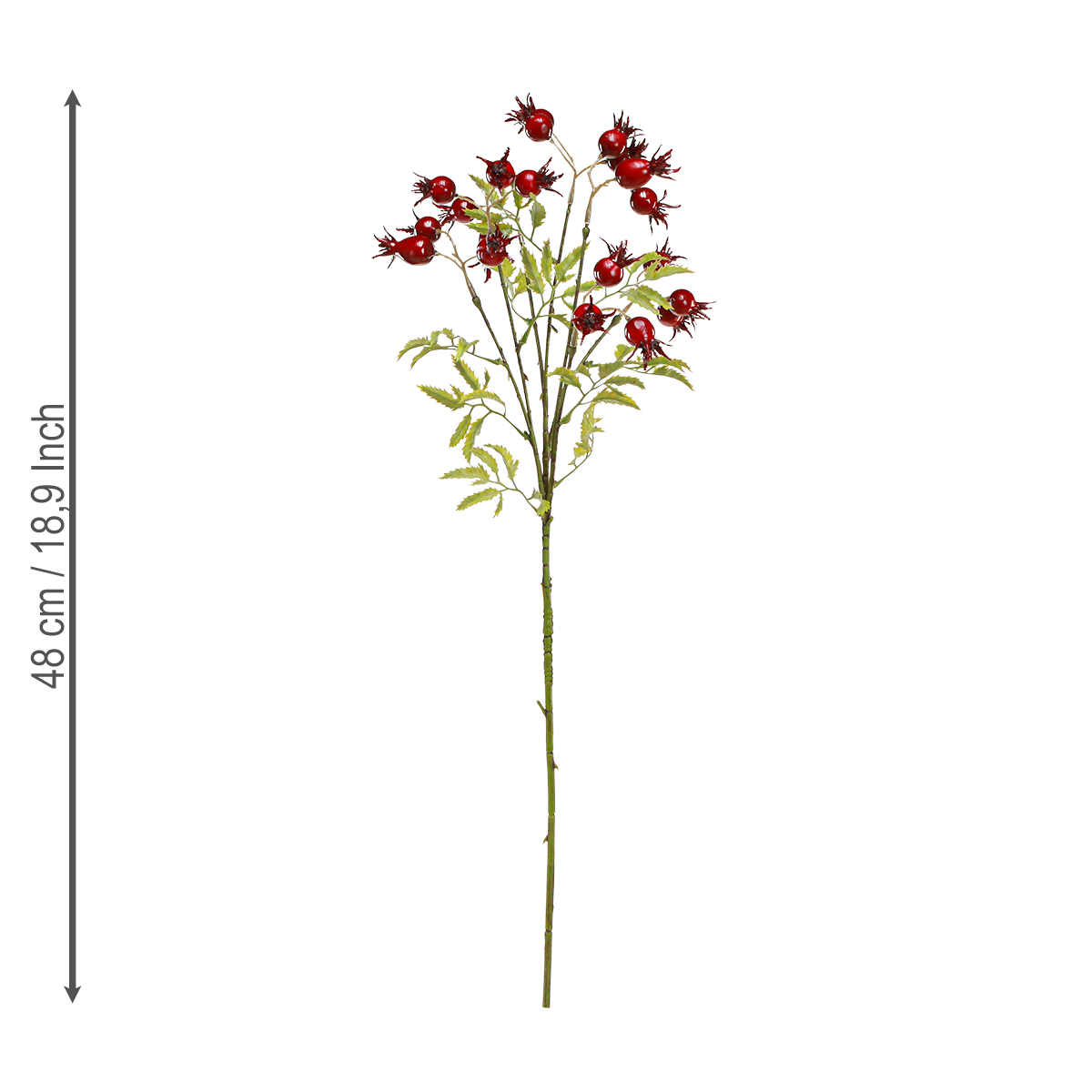 Názov produktu: Umelé ozdobné konáre zo šípkov so 7 plodmi tmavočervené 48 cm