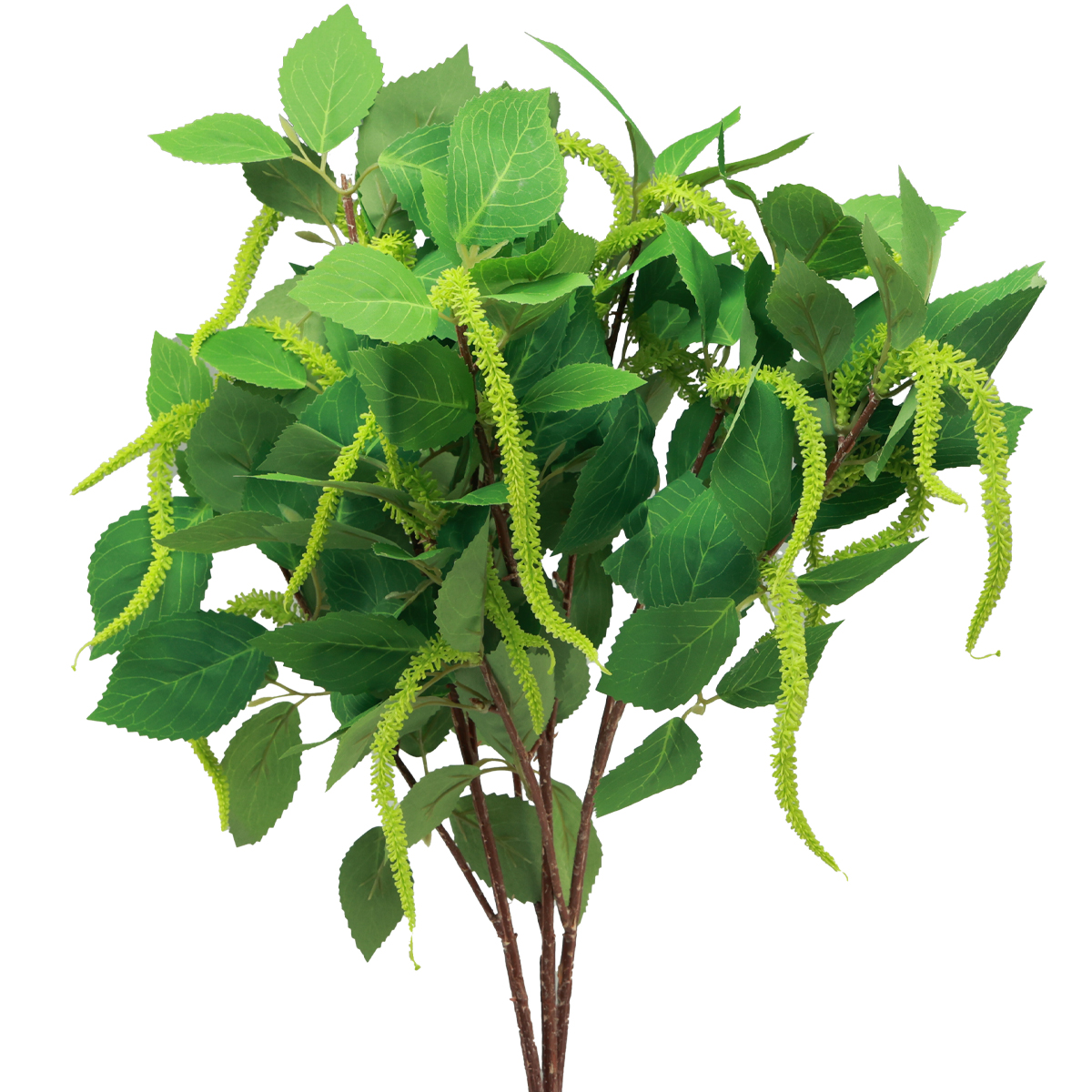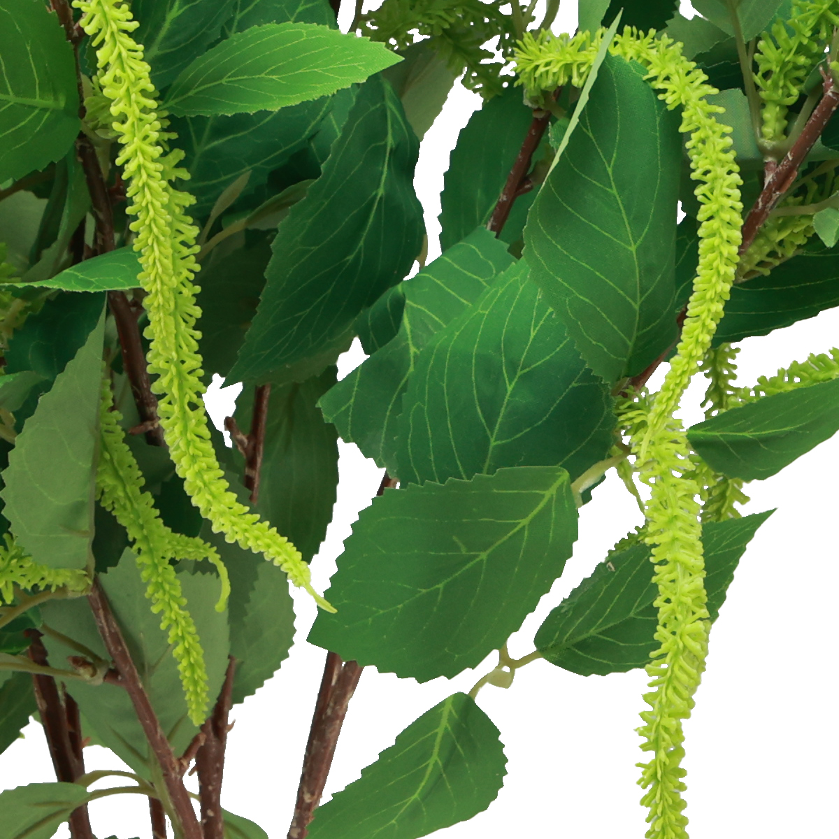 Každá z brezových vetiev má rôzne listy rôznych veľkostí a zelené brezy dotvárajú vzhľad umelých konárov.