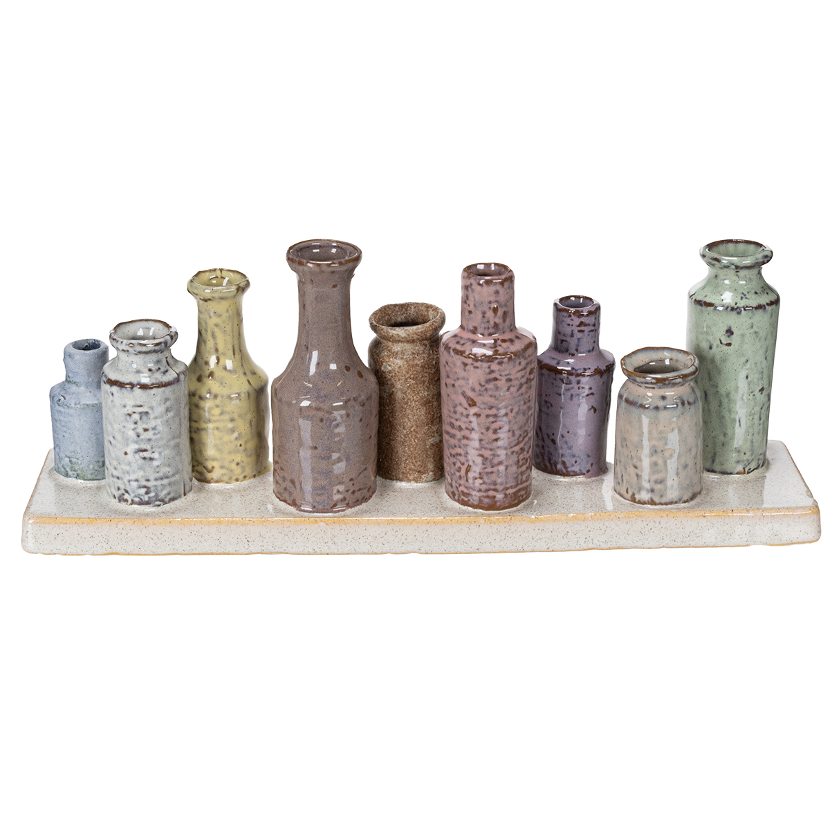 - 9 malých, ručne vyrobených keramických váz v zladených farbách