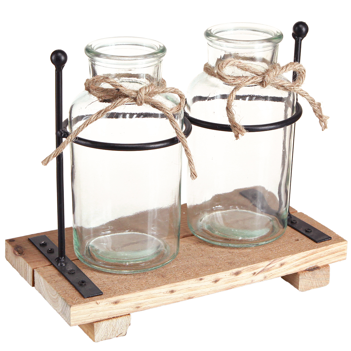 Váza na fľašu ozdobné fľaše sklenené drevo 23x12x19,5cm 2ks