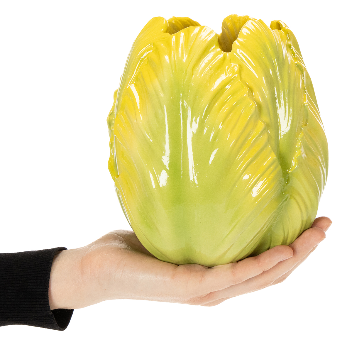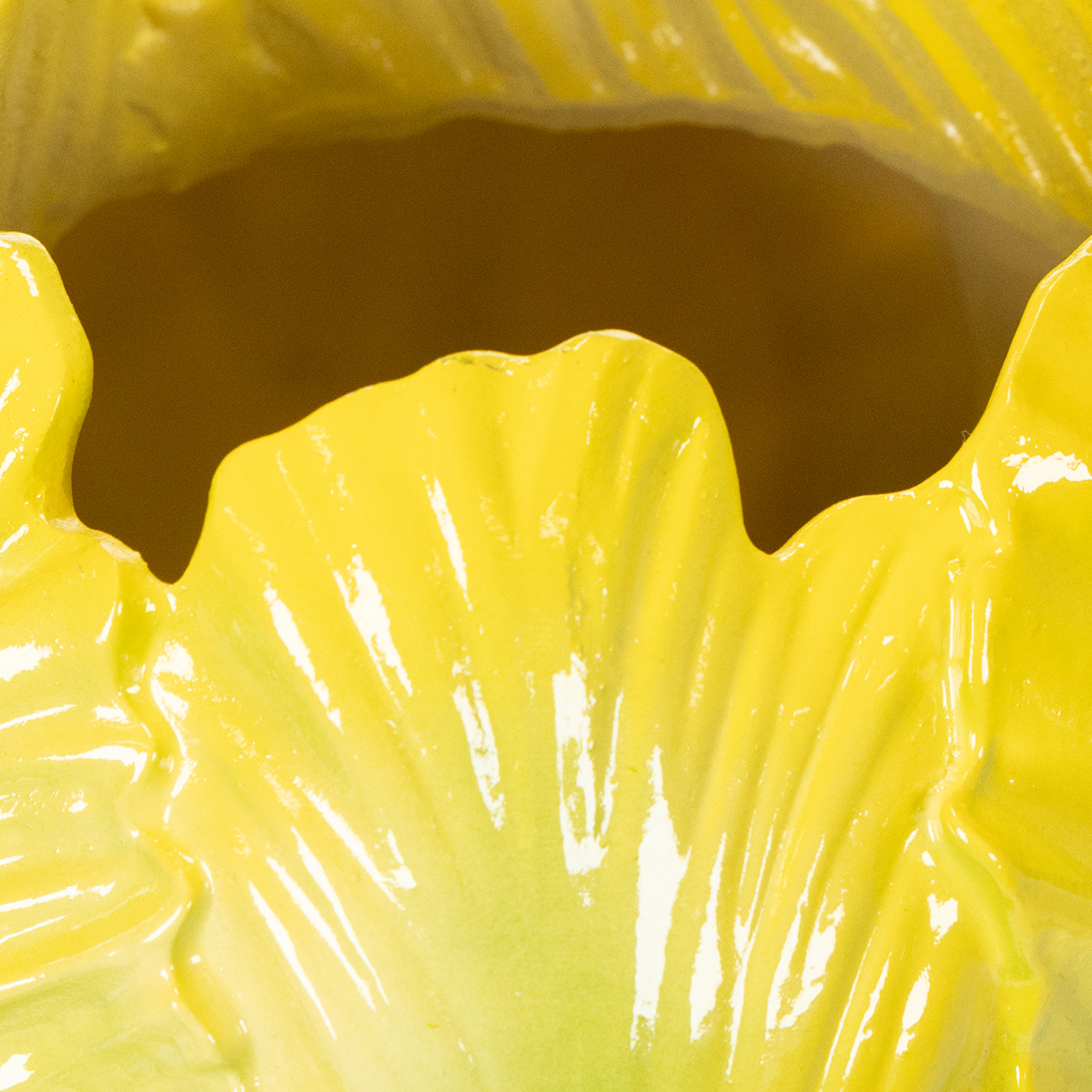 Táto váza je viac než len domovom pre kvety – je to dizajnový kúsok, ktorý harmonicky zapadne do každého obytného priestoru. Jej výrazný tvar pripomína kvitnúci tulipán s jemne tvarovanými, vejárovito roztiahnutými okvetnými lístkami v žiarivom žltom a zelenom prechode. To dodáva váze prirodzený, no zároveň moderný vzhľad. Praktická: váza je vyrobená z polyresinu, je odolná a nenáročná na údržbu. Či už aranžujete čerstvé tulipány, voňavé hyacinty alebo jemné vetvičky, váza poskytuje harmonické prostredie. Obzvlášť pôsobivo vyzerá v kombinácii s ďalšími doplnkami v rovnakej farebnej palete, ako sú pastelovo sfarbené obrúsky alebo sviečky s jemnou jarnou vôňou. Tip: Táto sada váz je tiež vynikajúcim darčekom. V kombinácii s kyticou farebných kvetov zaručene urobí dojem. Pre decentnejší vzhľad môžete vázu naplniť sušenými kvetmi alebo umelými kvetmi v kvetinovej pene, alebo dokonca zasadiť niečo iné. Takto získate štýlovú dekoráciu na celý rok.