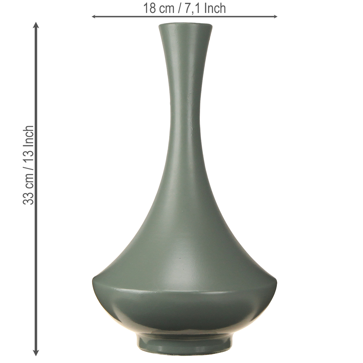 Táto dekoratívna váza zaujme svojím harmonicky zaobleným tvarom a vysoko kvalitným kovovým spracovaním. Matná zelená povrchová úprava je decentná a zároveň elegantná a zdôrazňuje jej moderný charakter. Či už ju použijete ako ústredný prvok v jedálni, dekoratívny akcent na komode alebo štýlový prvok na kancelárskom stole, jej všestrannosť z nej robí nepostrádateľný doplnok každej domácnosti. S výškou 33 cm má ideálnu veľkosť, ktorá sa bez problémov začlení do každej miestnosti a zároveň zanechá výrazný prvok. Tí, ktorí oceňujú minimalistickú estetiku, si ju zamilujú – ale krásne vynikne aj v kombinácii s inými dekoratívnymi kúskami.