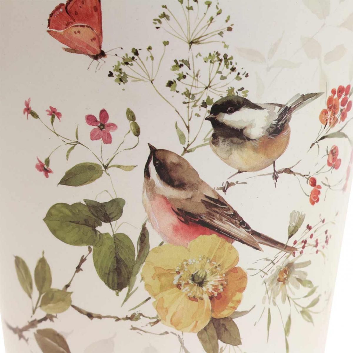 Nostalgická potlač, ktorá bola starostlivo nalepená na kvetináč ako fólia, pripomína staré zátišie s vtáčikmi a na každom zinkovom kvetináči sa líši pre väčšiu pestrosť jarnej výzdoby. Mimochodom, rukoväť na vedre je vyrobená z pravého dreva. Dekoratívne vedierko vyzerá ako skutočný vintage predmet ako kvetináč.
