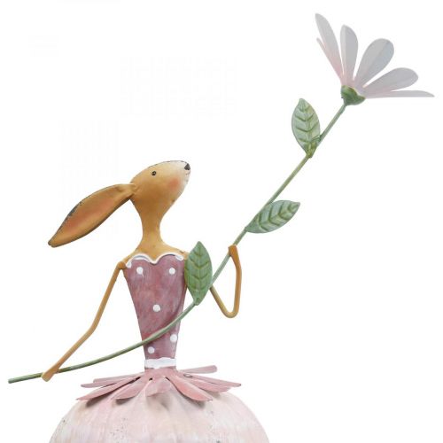 S láskou maľované, elegantné kovové veľkonočné ozdoby: dekoratívny veľkonočný zajačik spája nostalgiu a eleganciu do detailnej jarnej dekorácie.Ozdobný veľkonočný zajačik vyzerá dobre na svojich dlhých nohách a vysokých opätkoch. Šikmá sukňa v tvare kalicha dodáva ozdobnej postave plnosť a dokonale sa hodí k téme jarnej dekorácie a kvietku, ktorý zajačik drží.