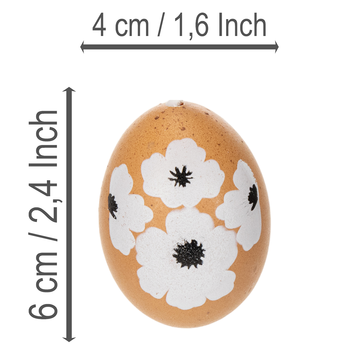Názov produktu: Veľkonočná dekorácia na zavesenie vajíčok, jarná, Veľká noc, pravé slepačie vajcia, prírodné, 6 cm, 6 kusov