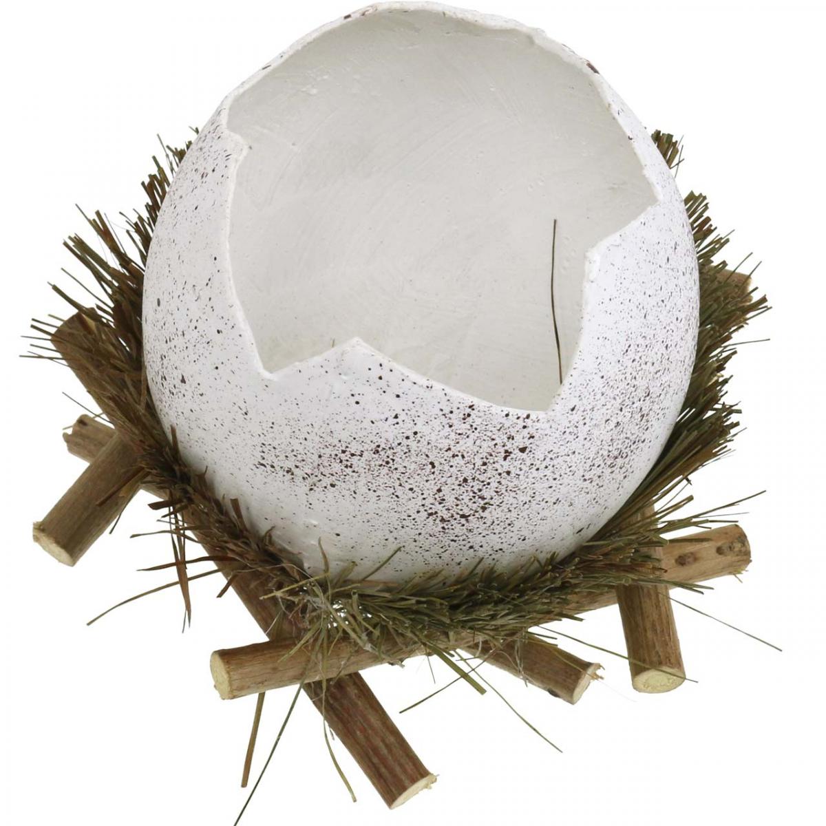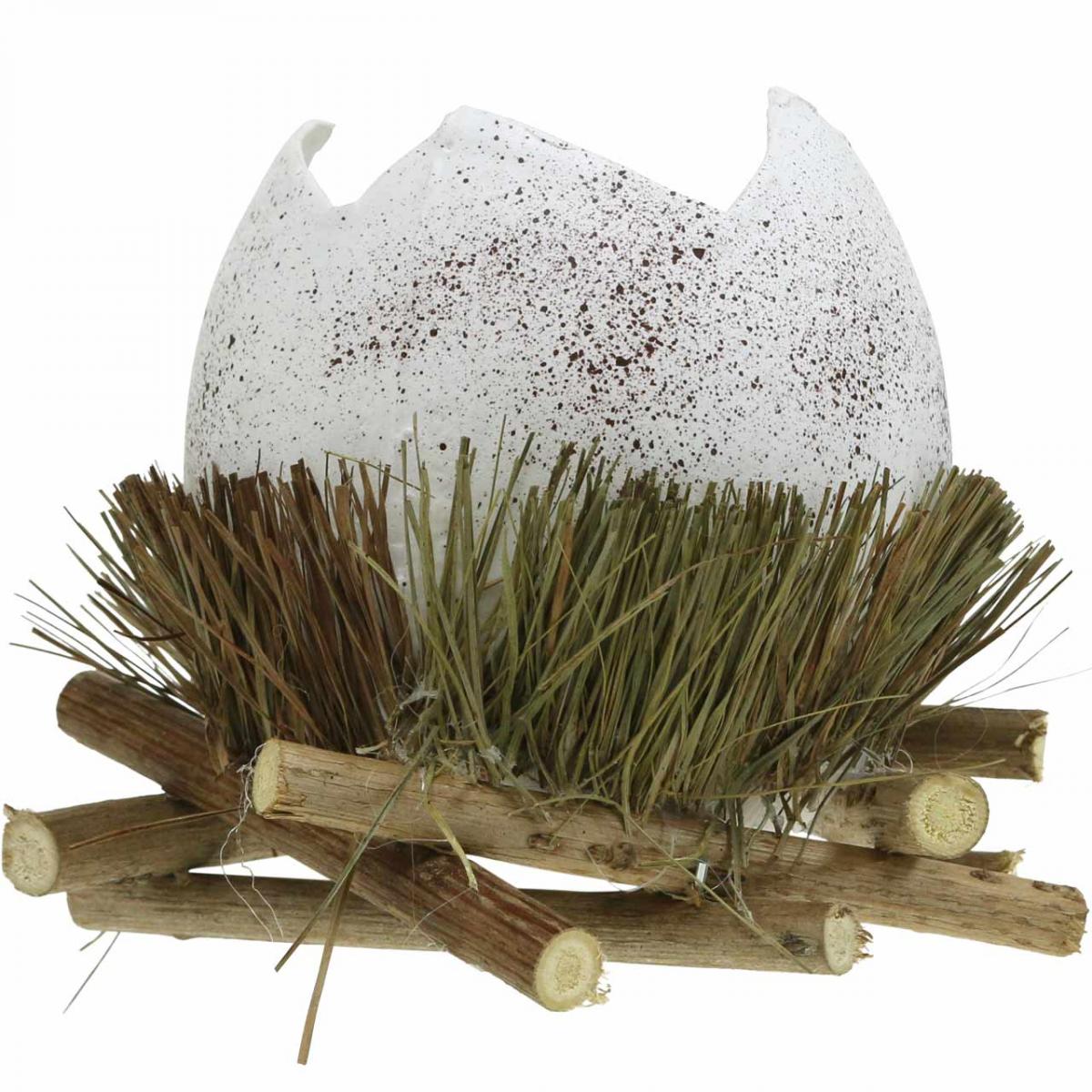 Veľkonočná dekorácia, vajíčko v hniezde, ozdobné vajíčko, vtáčie hniezdo Ø9cm V10cm Biele, prírodné farby 4 kusy