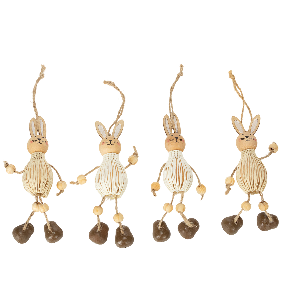 Tieto veľkonočné zajačiky s ich vzhľadom prírodného dreva a dvojfarebným dizajnom majú nadčasový a očarujúci vzhľad. V bielej farbe a s dizajnom prírodného dreva sa perfektne hodia k veľkonočným dekoráciám vo vidieckom alebo vintage štýle. Ich detailné spracovanie je obzvlášť krásne – s pohyblivými nožičkami a veselými tváričkami tieto ozdoby dodajú vašim dekoráciám hravú ľahkosť.