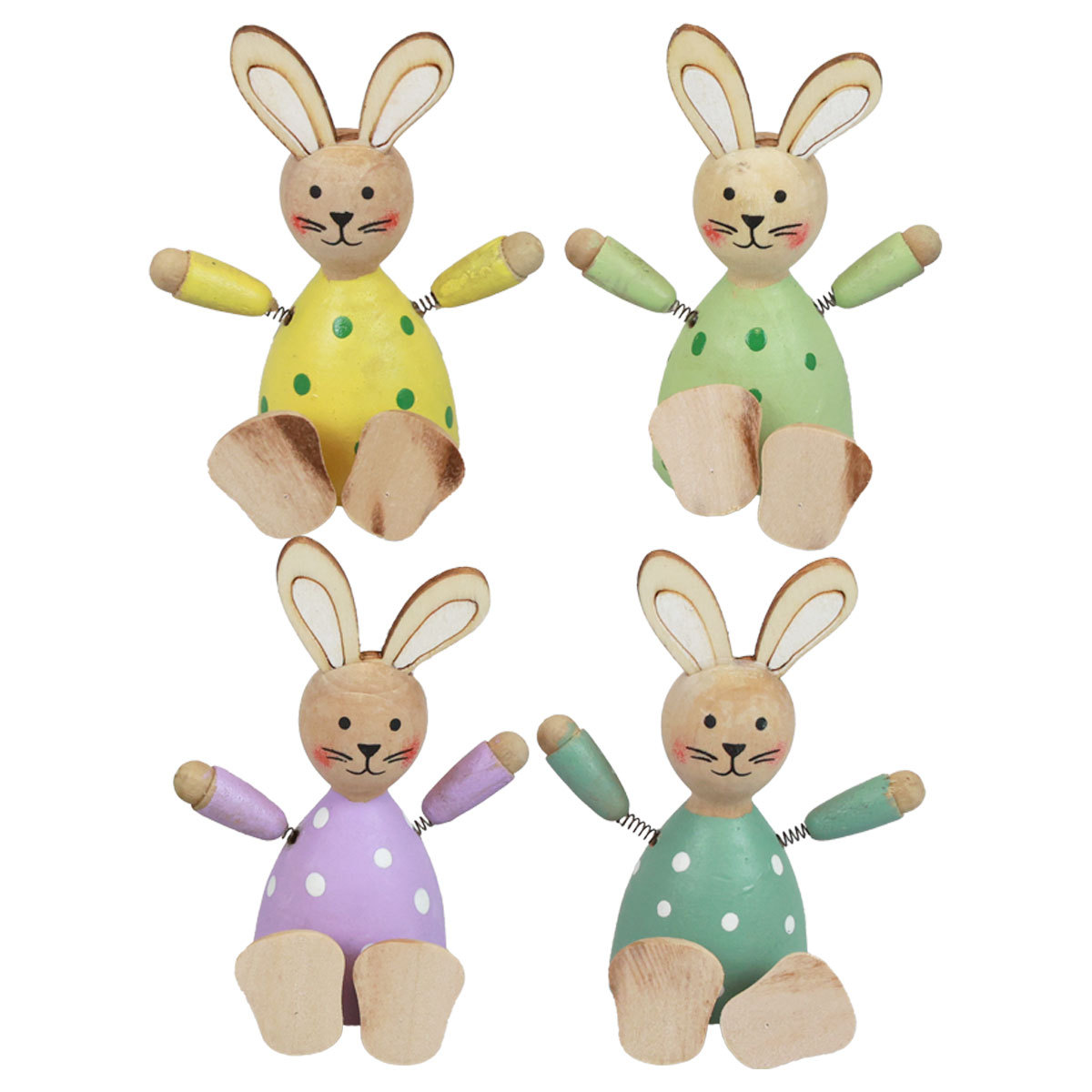 Balenie obsahuje štyroch rôznych veľkonočných zajačikov v pestrých farbách - po jednom bodkovanom zajačikovi v žltej, fialovej, svetlozelenej a tyrkysovej farbe.