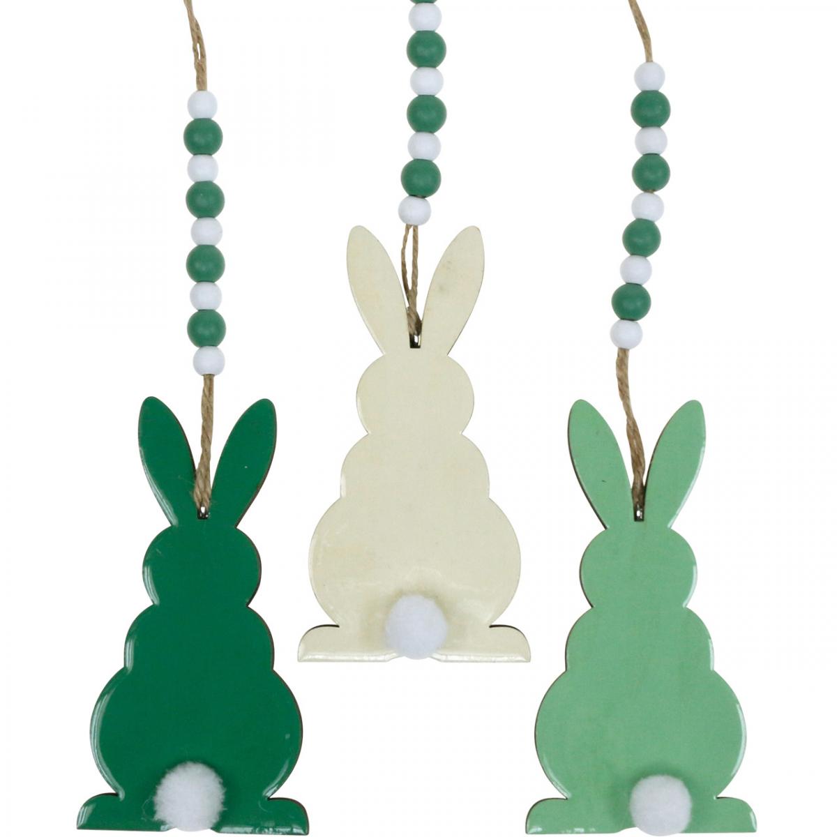 Veľkonočné zajačiky na zavesenie, jarná dekorácia, prívesok, ozdobné zajačiky zelené, biele 3 kusy